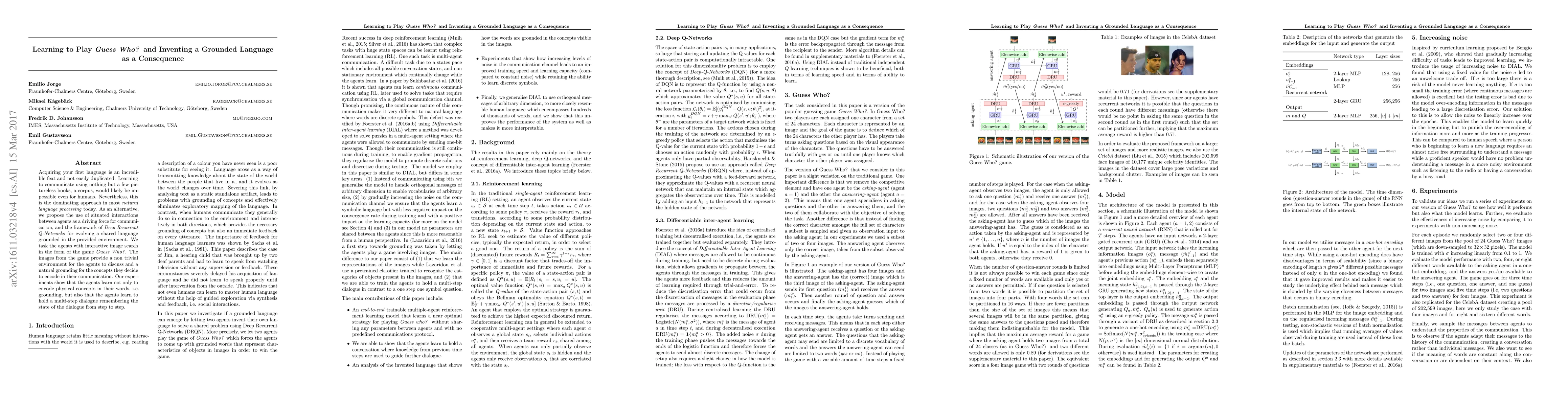 This paper proposes using situated interactions and Deep Recurrent Q-Networks to evolve a shared language grounded in an environment, specifically through the game Guess Who?. The agents learn to ground physical concepts in their communication and maintain multi-step dialogues, demonstrating the potential of interactive methods in language learning.