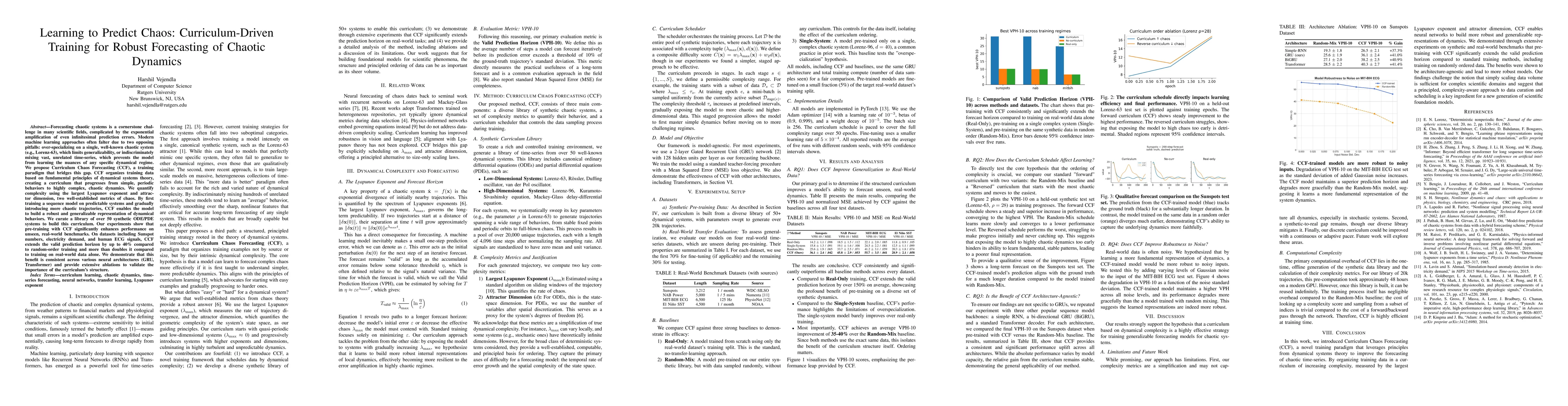 The paper introduces Curriculum Chaos Forecasting (CCF), a training paradigm that organizes synthetic chaotic time-series data based on dynamical systems theory principles. It uses the largest Lyapunov exponent and attractor dimension to quantify complexity, then trains models on progressively more complex systems to build robust forecasting capabilities.