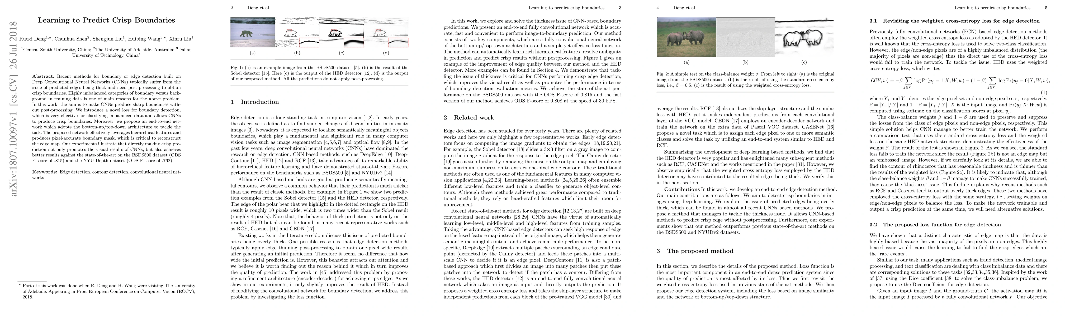 A new loss function and end-to-end network architecture improve boundary detection accuracy in images without post-processing, achieving state-of-the-art results on benchmark datasets.