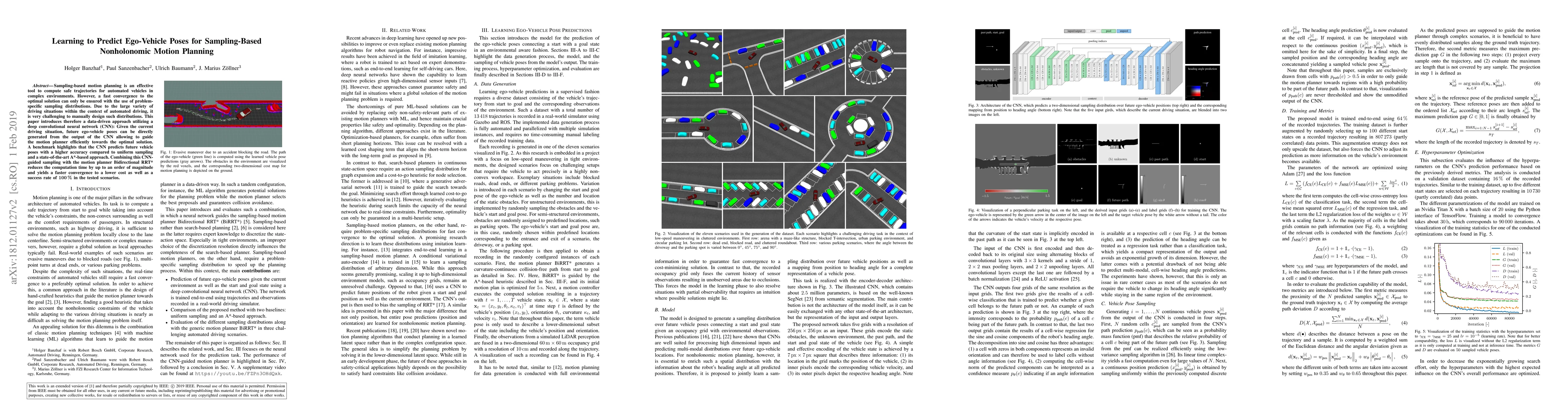 A new data-driven approach uses a deep convolutional neural network to predict future ego-vehicle poses for sampling-based motion planning, achieving higher accuracy and faster convergence than traditional methods.