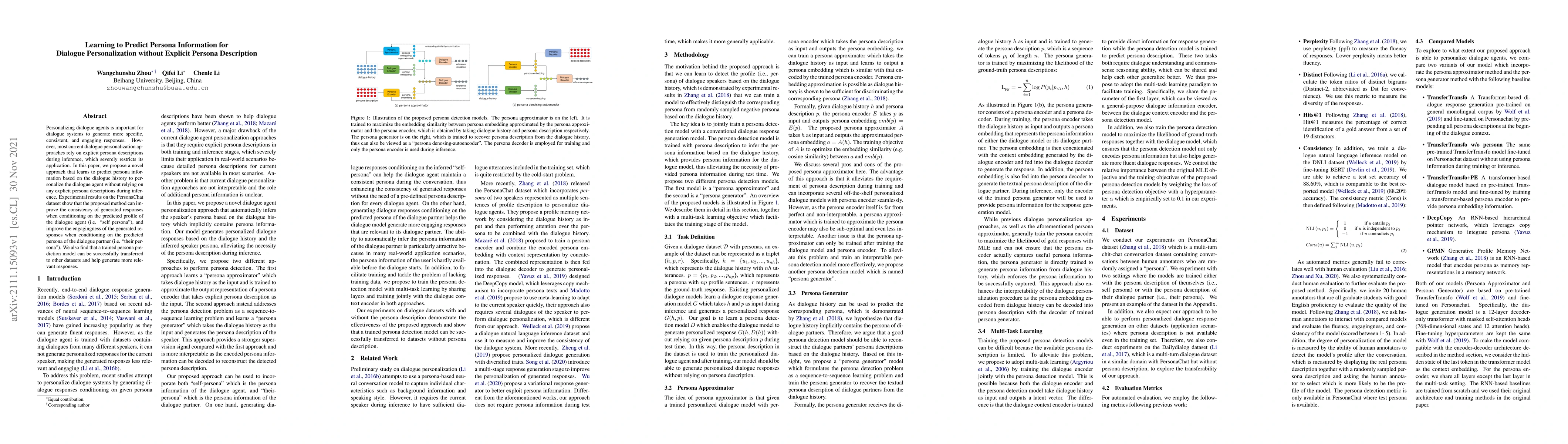 This paper proposes a method to personalize dialogue agents by predicting persona information from dialogue history, eliminating the need for explicit persona descriptions. Experimental results show improved consistency and engagement in generated responses, and the model's effectiveness is transferable across different datasets.