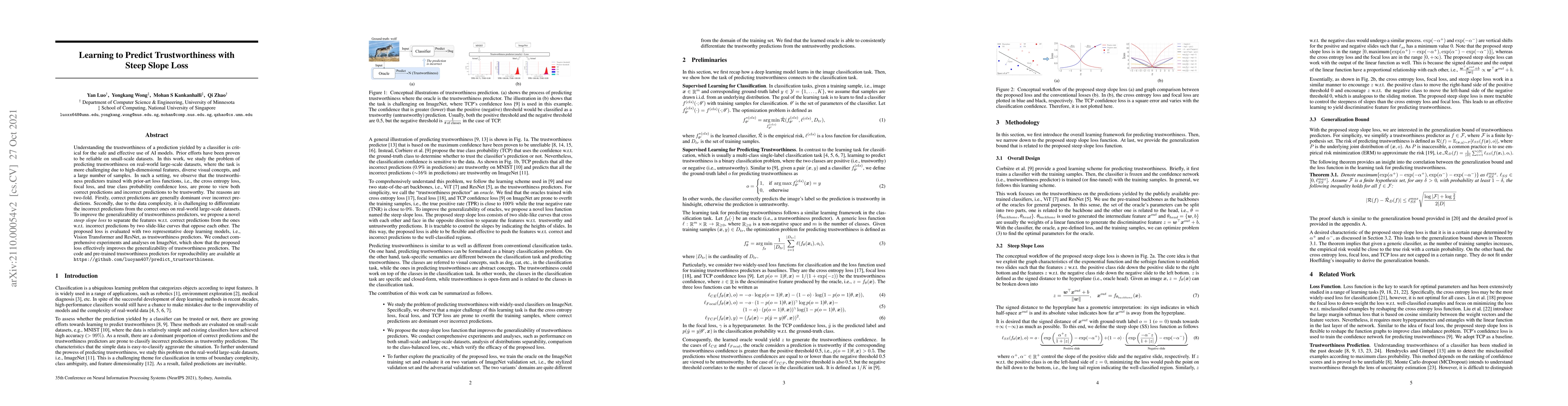 Understanding the trustworthiness of a prediction yielded by a classifier is critical for the safe and effective use of AI models. Prior efforts have been proven to be reliable on small-scale datasets. In this work, we study the problem of predicting trustworthiness on real-world large-scale datasets, where the task is more challenging due to high-dimensional features, diverse visual concepts, and large-scale samples. In such a setting, we observe that the trustworthiness predictors trained with prior-art loss functions, i.e., the cross entropy loss, focal loss, and true class probability confidence loss, are prone to view both correct predictions and incorrect predictions to be trustworthy. The reasons are two-fold. Firstly, correct predictions are generally dominant over incorrect predictions. Secondly, due to the data complexity, it is challenging to differentiate the incorrect predictions from the correct ones on real-world large-scale datasets. To improve the generalizability of trustworthiness predictors, we propose a novel steep slope loss to separate the features w.r.t. correct predictions from the ones w.r.t. incorrect predictions by two slide-like curves that oppose each other. The proposed loss is evaluated with two representative deep learning models, i.e., Vision Transformer and ResNet, as trustworthiness predictors. We conduct comprehensive experiments and analyses on ImageNet, which show that the proposed loss effectively improves the generalizability of trustworthiness predictors. The code and pre-trained trustworthiness predictors for reproducibility are available at https://github.com/luoyan407/predict_trustworthiness.