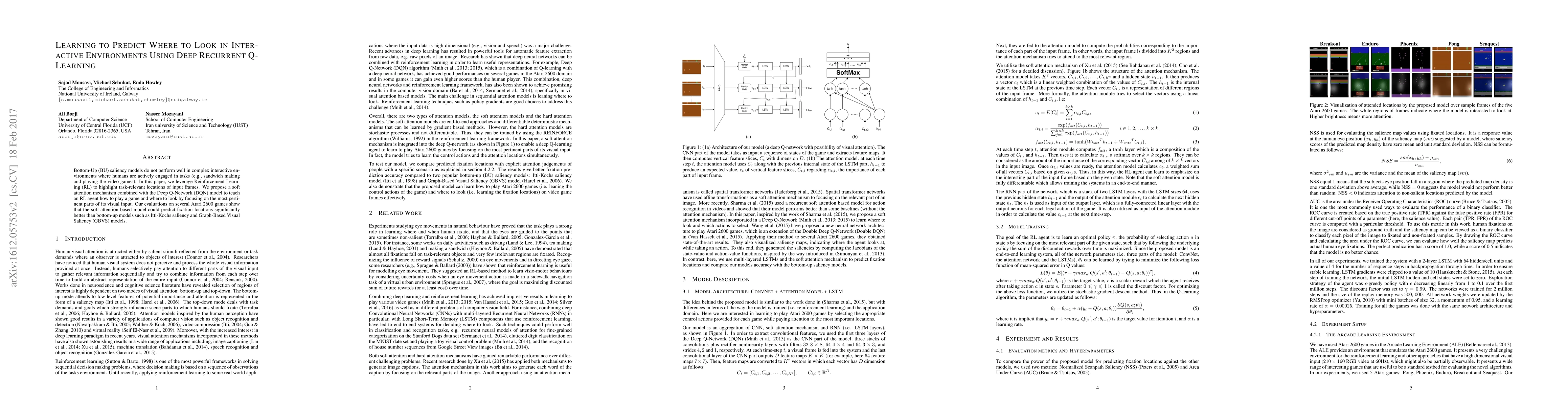 This paper proposes a deep recurrent Q-learning approach with a soft attention mechanism to improve visual prediction in interactive environments. The model outperforms traditional bottom-up saliency models in complex tasks, as demonstrated by its superior performance in predicting fixation locations in Atari 2600 games.