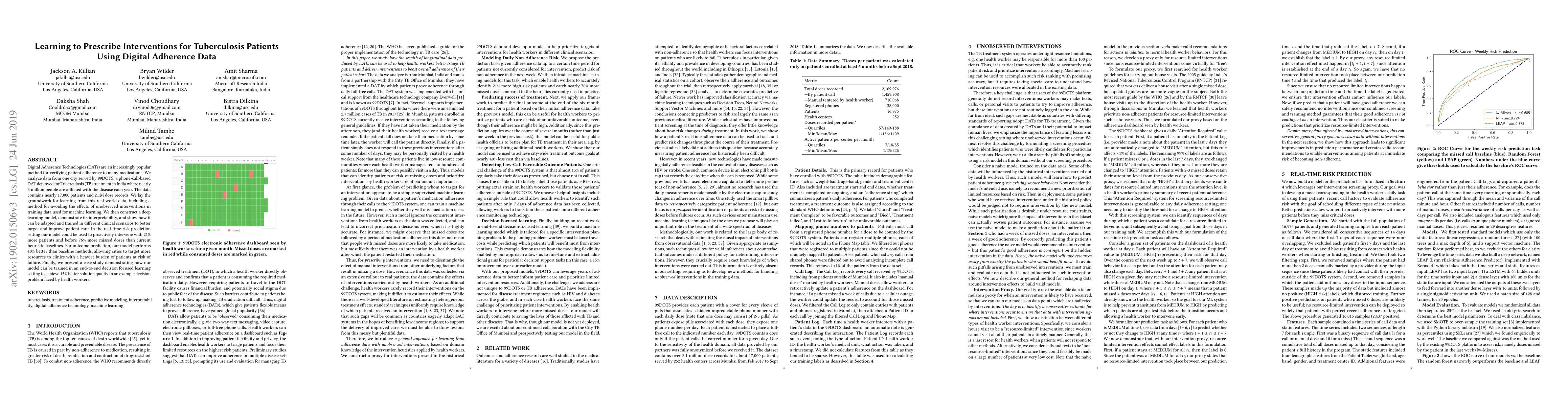 Digital Adherence Technologies (DATs) are an increasingly popular method for verifying patient adherence to many medications. We analyze data from one city served by 99DOTS, a phone-call-based DAT deployed for Tuberculosis (TB) treatment in India where nearly 3 million people are afflicted with the disease each year. The data contains nearly 17,000 patients and 2.1M dose records. We lay the groundwork for learning from this real-world data, including a method for avoiding the effects of unobserved interventions in training data used for machine learning. We then construct a deep learning model, demonstrate its interpretability, and show how it can be adapted and trained in different clinical scenarios to better target and improve patient care. In the real-time risk prediction setting our model could be used to proactively intervene with 21% more patients and before 76% more missed doses than current heuristic baselines. For outcome prediction, our model performs 40% better than baseline methods, allowing cities to target more resources to clinics with a heavier burden of patients at risk of failure. Finally, we present a case study demonstrating how our model can be trained in an end-to-end decision focused learning setting to achieve 15% better solution quality in an example decision problem faced by health workers.