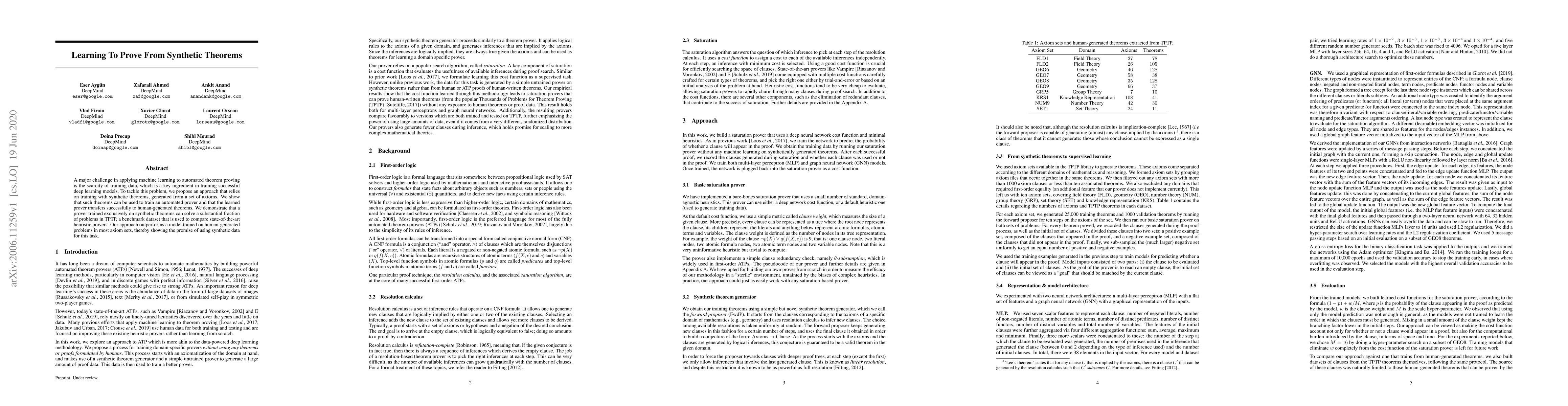 This paper proposes using synthetic theorems generated from axioms to train an automated theorem prover, addressing the scarcity of training data. The trained prover successfully transfers to human-generated theorems and outperforms models trained on human-generated problems, demonstrating the potential of synthetic data in automated theorem proving.