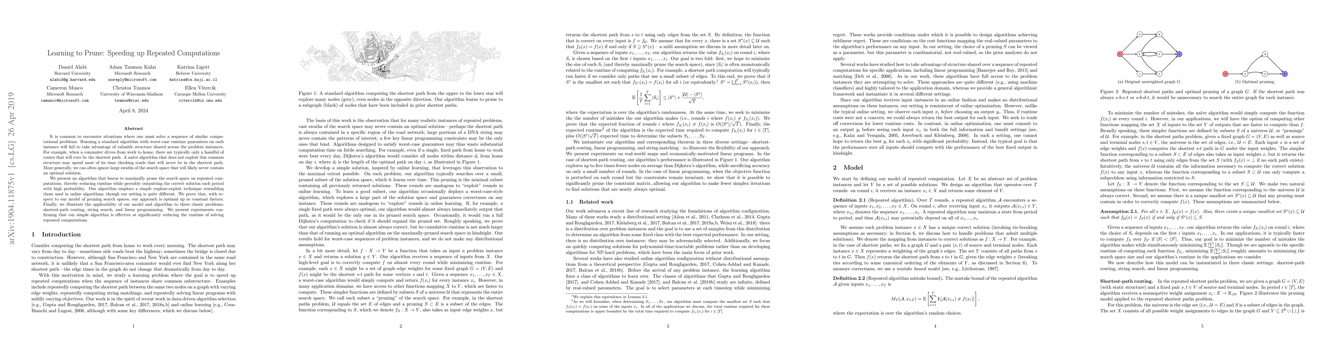 It is common to encounter situations where one must solve a sequence of similar computational problems. Running a standard algorithm with worst-case runtime guarantees on each instance will fail to take advantage of valuable structure shared across the problem instances. For example, when a commuter drives from work to home, there are typically only a handful of routes that will ever be the shortest path. A naive algorithm that does not exploit this common structure may spend most of its time checking roads that will never be in the shortest path. More generally, we can often ignore large swaths of the search space that will likely never contain an optimal solution. We present an algorithm that learns to maximally prune the search space on repeated computations, thereby reducing runtime while provably outputting the correct solution each period with high probability. Our algorithm employs a simple explore-exploit technique resembling those used in online algorithms, though our setting is quite different. We prove that, with respect to our model of pruning search spaces, our approach is optimal up to constant factors. Finally, we illustrate the applicability of our model and algorithm to three classic problems: shortest-path routing, string search, and linear programming. We present experiments confirming that our simple algorithm is effective at significantly reducing the runtime of solving repeated computations.