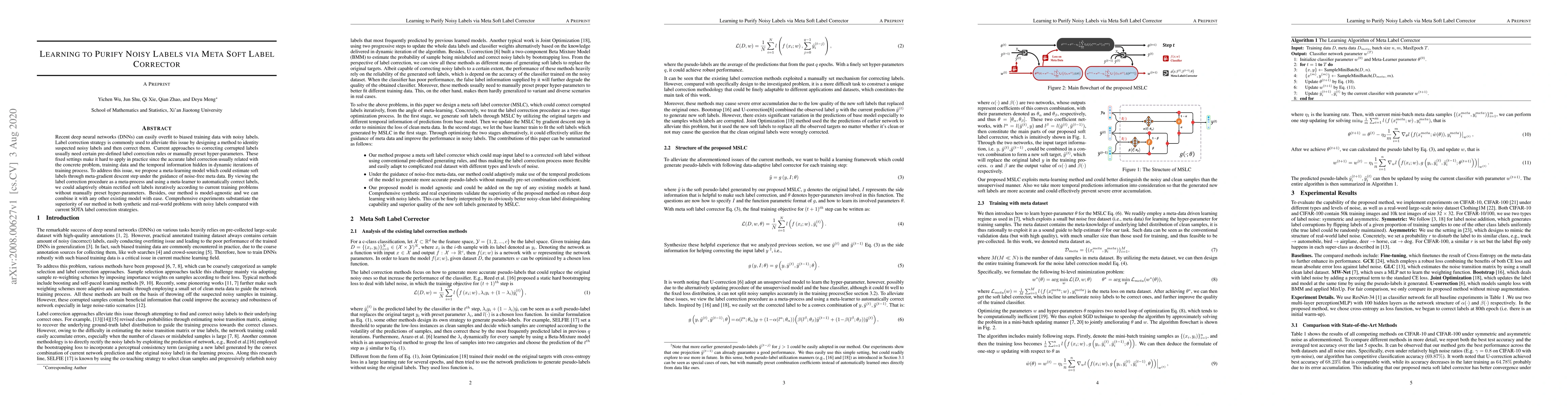 This paper proposes a meta-learning model to dynamically correct noisy labels in training data for deep neural networks, eliminating the need for predefined rules or manual hyperparameters. The method iteratively estimates soft labels through meta-gradient descent, demonstrating superior performance in both synthetic and real-world datasets.