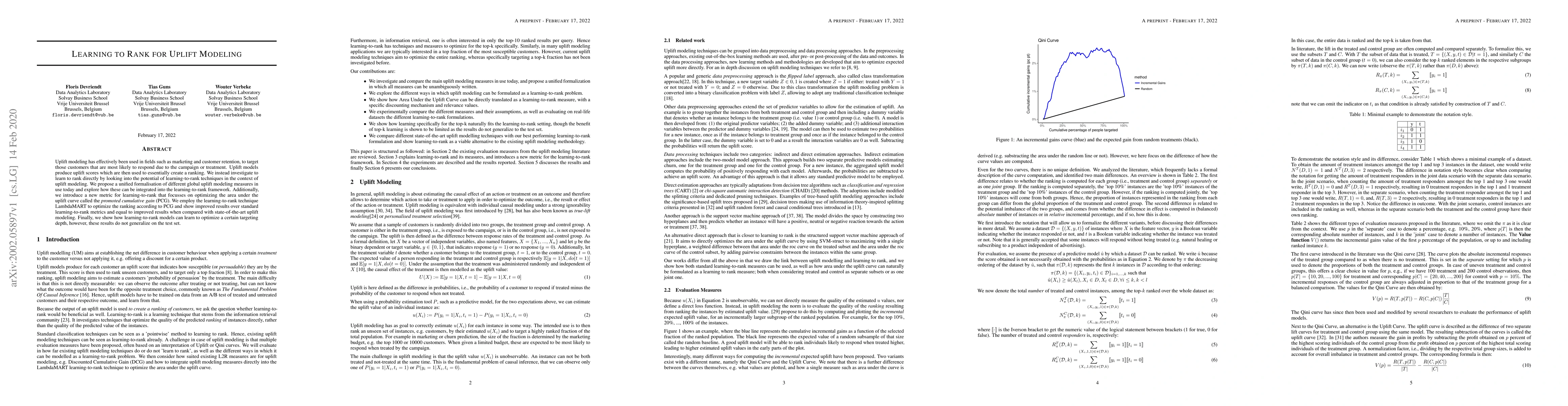 Researchers explore using learning-to-rank techniques to directly learn rankings for uplift modeling, achieving improved results over standard metrics and state-of-the-art methods in some cases.