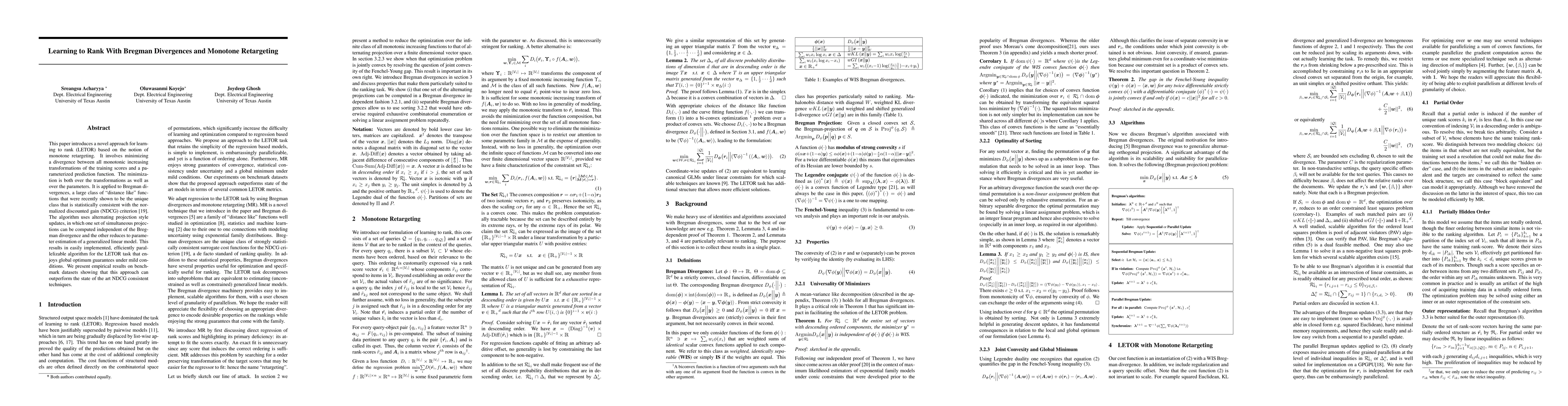 This paper introduces a novel approach for learning to rank (LETOR) based on the notion of monotone retargeting. It involves minimizing a divergence between all monotonic increasing transformations of the training scores and a parameterized prediction function. The minimization is both over the transformations as well as over the parameters. It is applied to Bregman divergences, a large class of "distance like" functions that were recently shown to be the unique class that is statistically consistent with the normalized discounted gain (NDCG) criterion [19]. The algorithm uses alternating projection style updates, in which one set of simultaneous projections can be computed independent of the Bregman divergence and the other reduces to parameter estimation of a generalized linear model. This results in easily implemented, efficiently parallelizable algorithm for the LETOR task that enjoys global optimum guarantees under mild conditions. We present empirical results on benchmark datasets showing that this approach can outperform the state of the art NDCG consistent techniques.