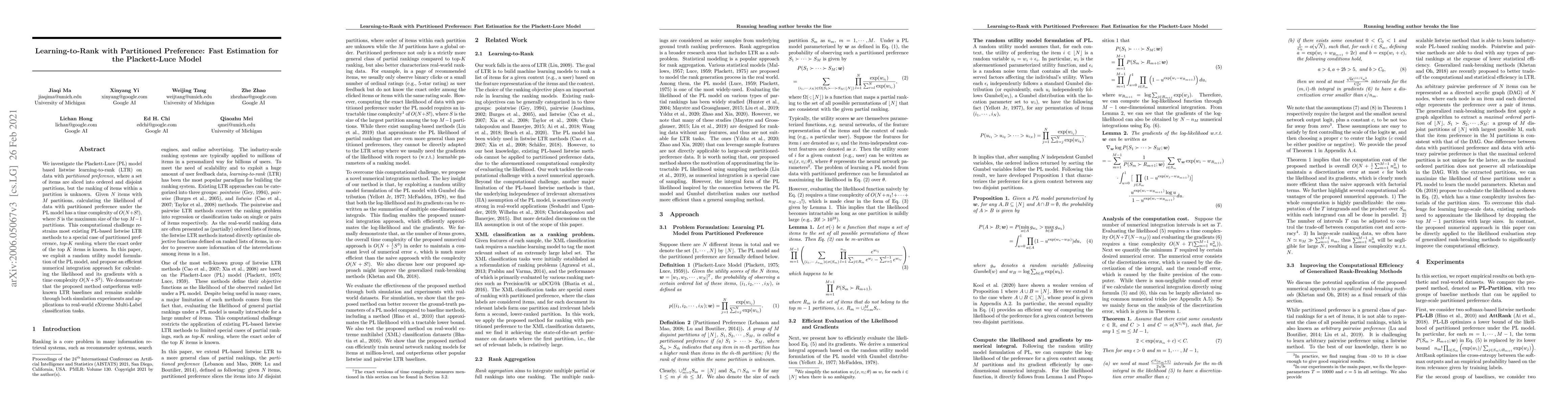 This paper proposes an efficient numerical integration approach to calculate the likelihood and gradients for the Plackett-Luce model under partitioned preference, achieving a time complexity of $O(N+S^3)$ and outperforming existing listwise learning-to-rank methods in both simulations and real-world applications.