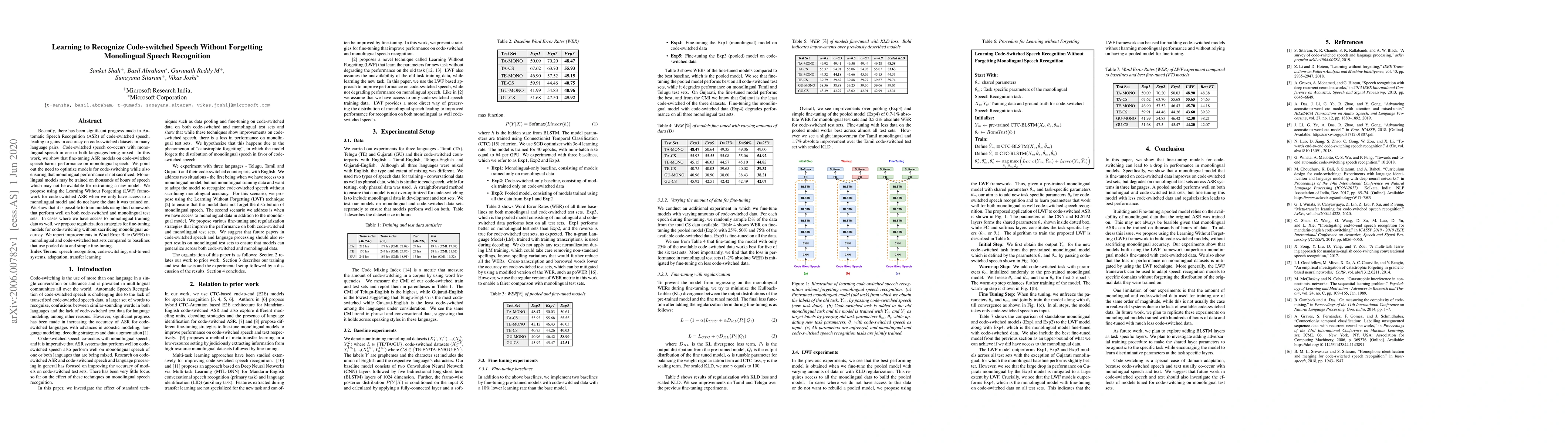 This paper addresses the challenge of improving Automatic Speech Recognition (ASR) for code-switched speech without compromising monolingual performance. It proposes the Learning Without Forgetting framework and regularization strategies to optimize code-switched ASR models while maintaining monolingual accuracy, achieving better Word Error Rate (WER) on both test sets.