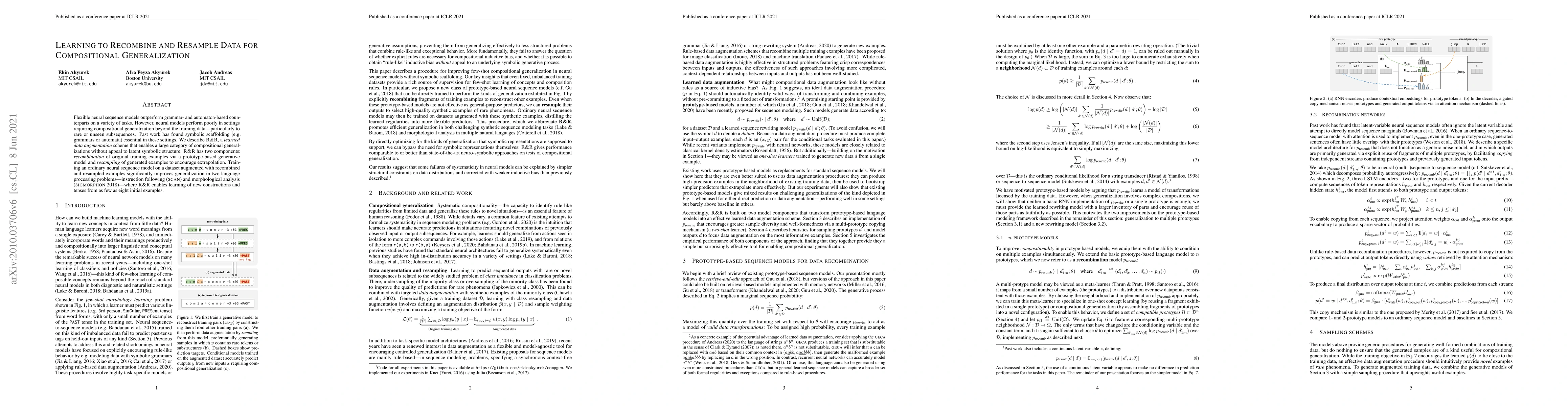 This paper introduces R&R, a data augmentation method that recombines and resamples training examples to improve neural sequence models' compositional generalization. R&R enhances performance on tasks requiring learning from rare or unseen subsequences without relying on symbolic structures.