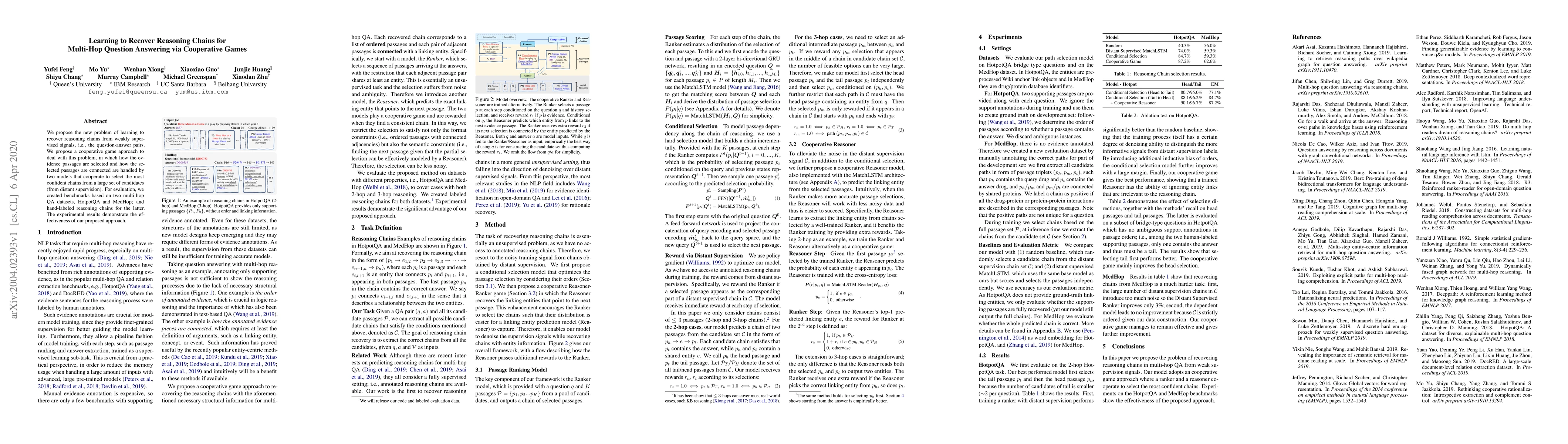 Researchers proposed a new approach to multi-hop question answering using cooperative games to learn from weakly supervised signals and create reasoning chains. Their method effectively recovers confident chains from large candidate sets.