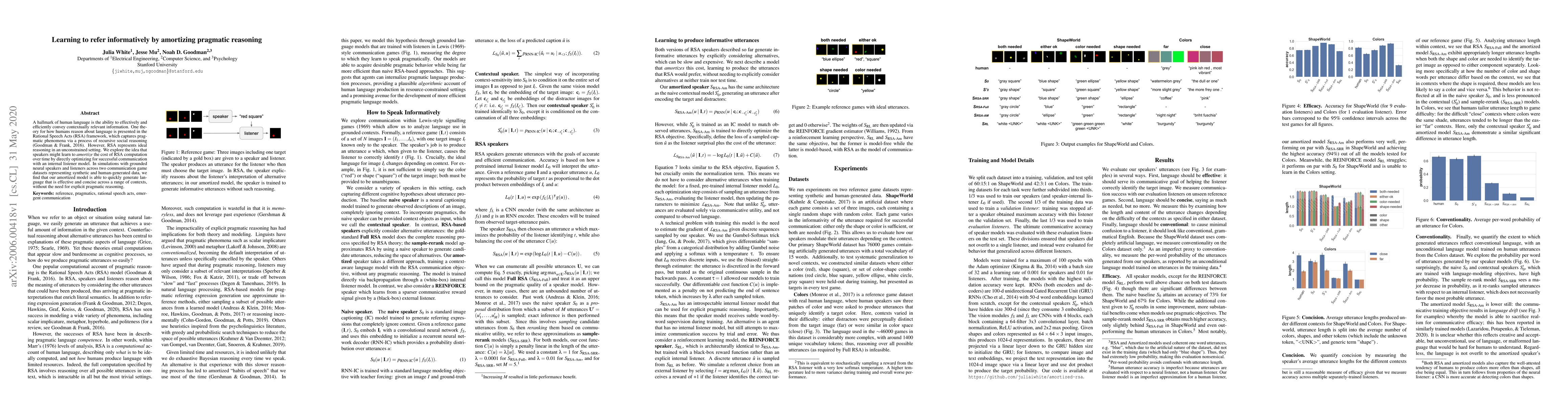 This paper investigates how speakers can learn to generate informative language efficiently by amortizing the computational cost of pragmatic reasoning, using an internal listener model to optimize for successful communication. The proposed approach demonstrates effectiveness in generating concise and contextually relevant language in both synthetic and human-generated communication datasets.
