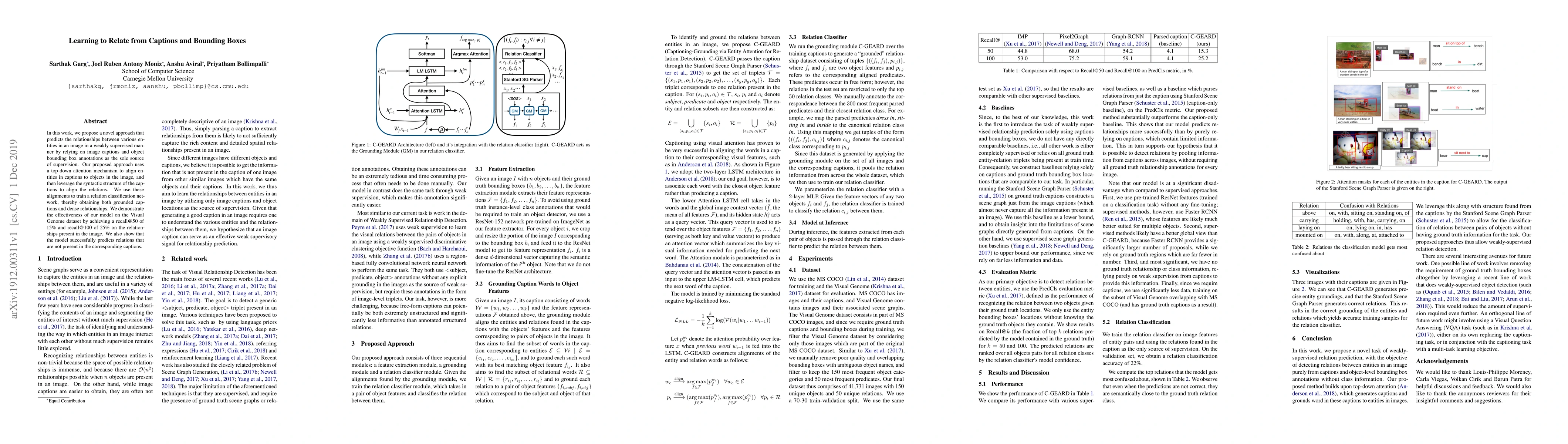 This paper introduces a weakly supervised method to predict image entity relationships using captions and bounding boxes, employing a top-down attention mechanism and syntactic caption structure for alignment. The model achieves notable recall rates on the Visual Genome dataset and can predict relations not explicitly mentioned in captions.