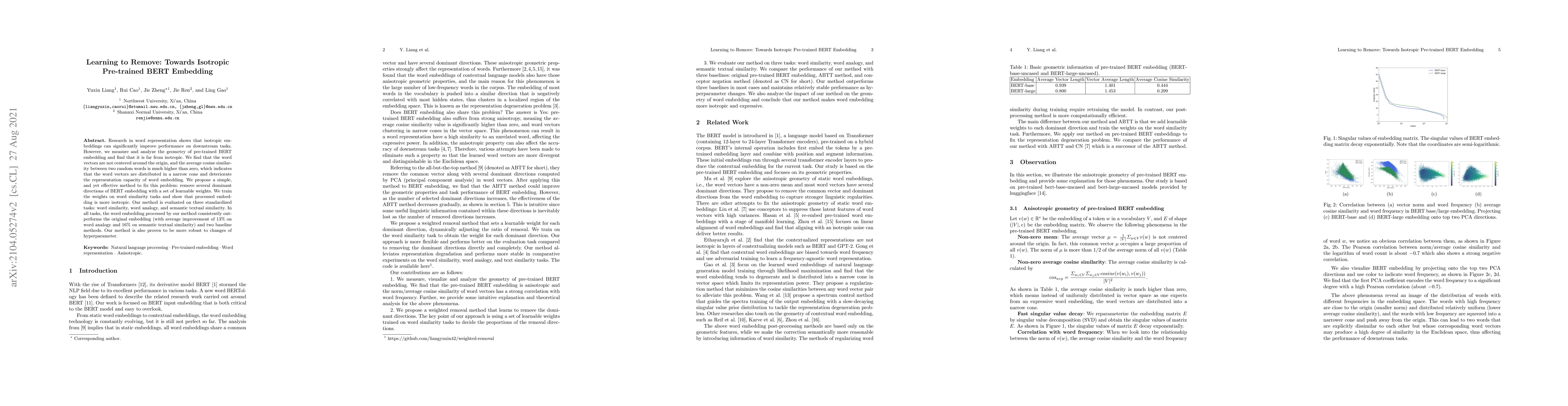 This paper addresses the issue of anisotropic pre-trained BERT embeddings, proposing a method to remove dominant directions to achieve isotropic embeddings. The processed embeddings show consistent performance improvements across word similarity, word analogy, and semantic textual similarity tasks, with notable enhancements in robustness and accuracy.