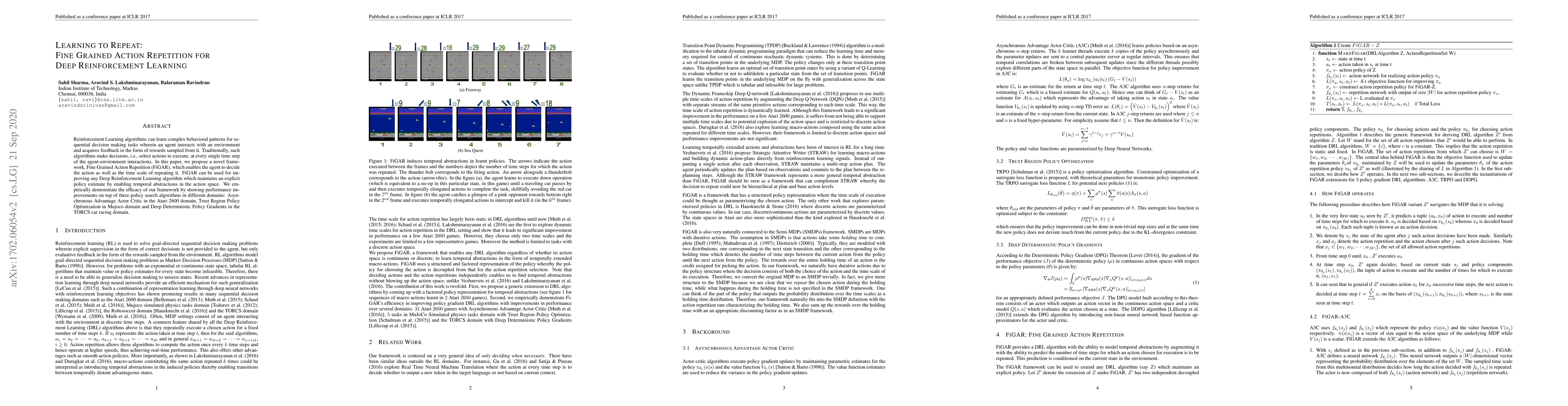This paper proposes Fine Grained Action Repetition (FiGAR), a framework that allows reinforcement learning agents to decide both the action and its repetition duration, enhancing temporal abstractions. Empirical results show performance improvements across various domains using different deep reinforcement learning algorithms.