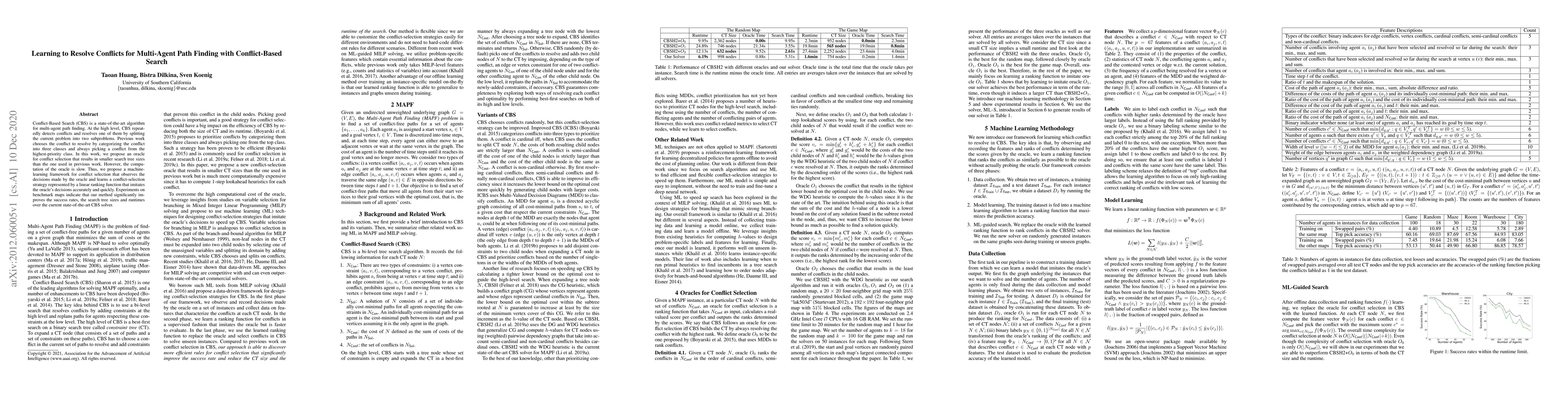 This paper proposes an advanced conflict-selection oracle for Conflict-Based Search (CBS) in multi-agent path finding, which reduces search tree sizes but is slow. To address this, a machine-learning framework is introduced to learn a fast, effective conflict-selection strategy, significantly improving success rates, search tree sizes, and runtimes compared to the current state-of-the-art.