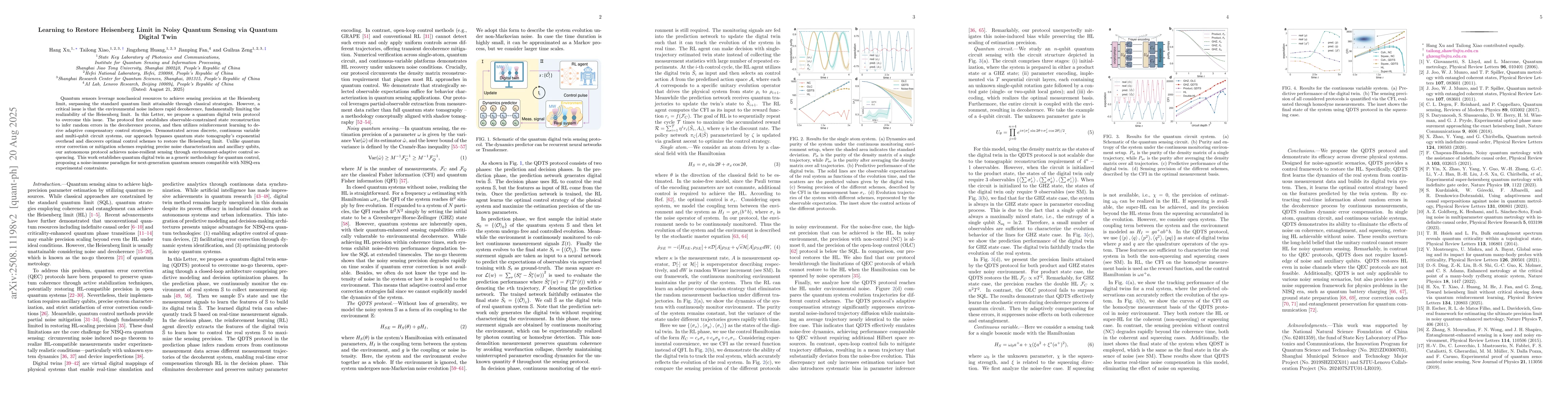 Quantum sensors leverage nonclassical resources to achieve sensing precision at the Heisenberg limit, surpassing the standard quantum limit attainable through classical strategies. However, a critical issue is that the environmental noise induces rapid decoherence, fundamentally limiting the realizability of the Heisenberg limit. In this Letter, we propose a quantum digital twin protocol to overcome this issue. The protocol first establishes observable-constrained state reconstruction to infer random errors in the decoherence process, and then utilizes reinforcement learning to derive adaptive compensatory control strategies. Demonstrated across discrete, continuous variable and multi-qubit circuit systems, our approach bypasses quantum state tomography's exponential overhead and discovers optimal control schemes to restore the Heisenberg limit. Unlike quantum error correction or mitigation schemes requiring precise noise characterization and ancillary qubits, our autonomous protocol achieves noise-resilient sensing through environment-adaptive control sequencing. This work establishes quantum digital twin as a generic methodology for quantum control, proposing a noise-immune paradigm for next-generation quantum sensors compatible with NISQ-era experimental constraints.