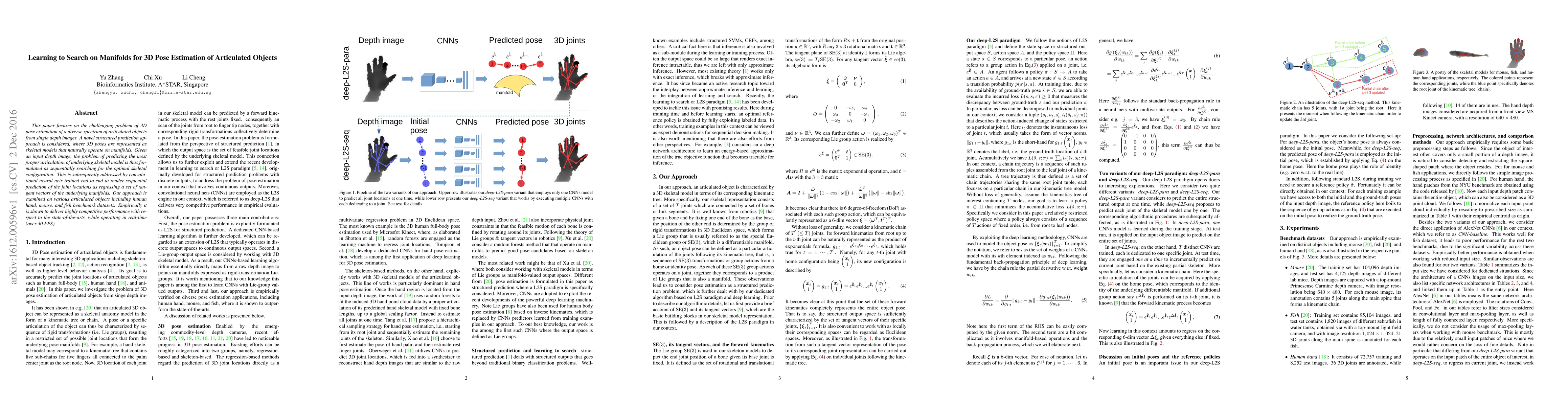 This paper proposes a novel structured prediction method for 3D pose estimation of articulated objects using depth images, representing poses as skeletal models on manifolds and employing convolutional neural networks for sequential prediction. The approach achieves competitive real-time performance on benchmark datasets.