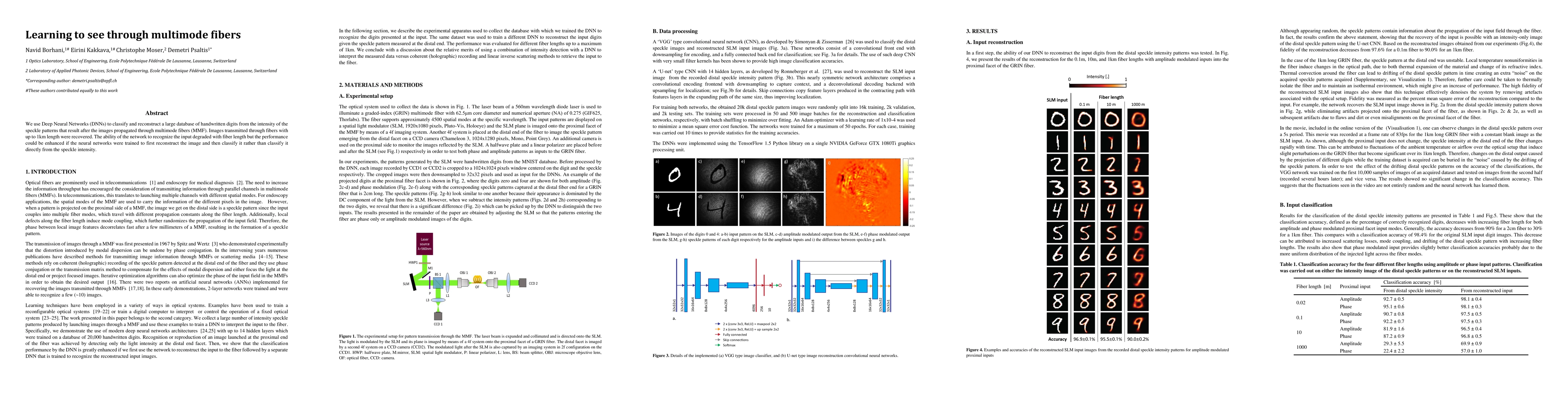 Researchers used deep neural networks to classify handwritten digits from speckle patterns in multimode fibers, achieving image recovery up to 1km long. Training the network to first reconstruct images improved performance.