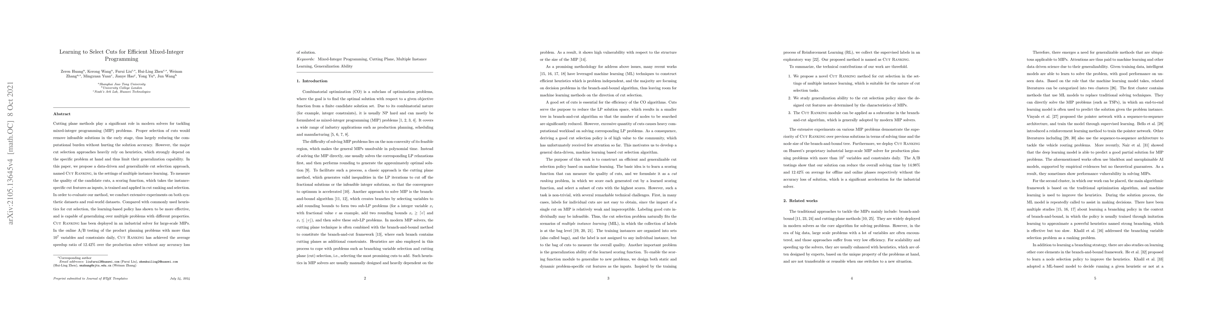 The paper presents Cut Ranking, a learning-based cut selection policy that uses neural networks to rank cuts based on their potential to improve MIP solving efficiency.
