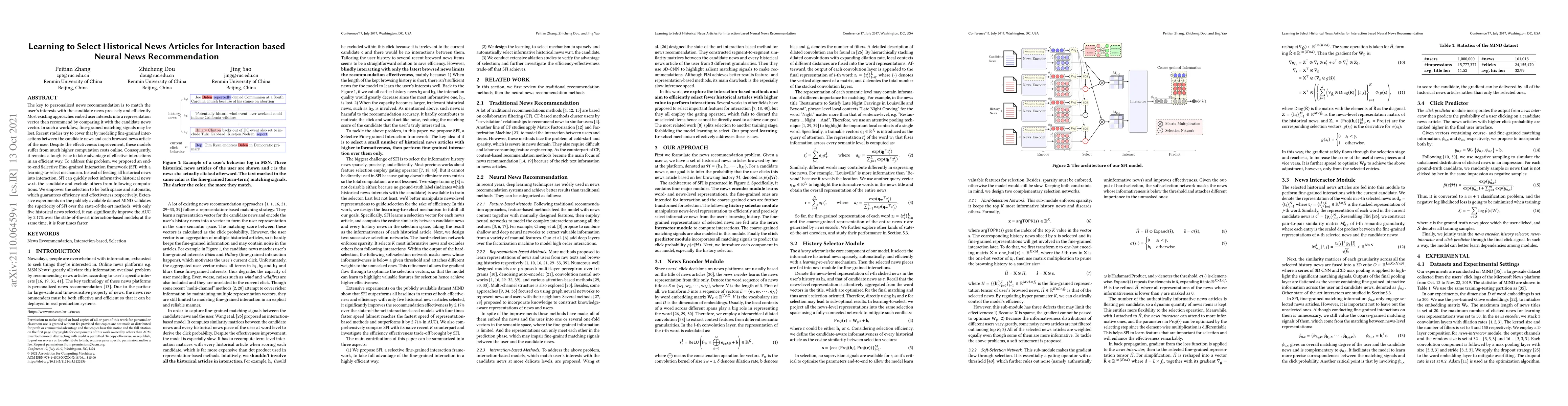 A new framework called Selective Fine-grained Interaction (SFI) improves personalized news recommendation by efficiently selecting informative historical news articles to match user interests.