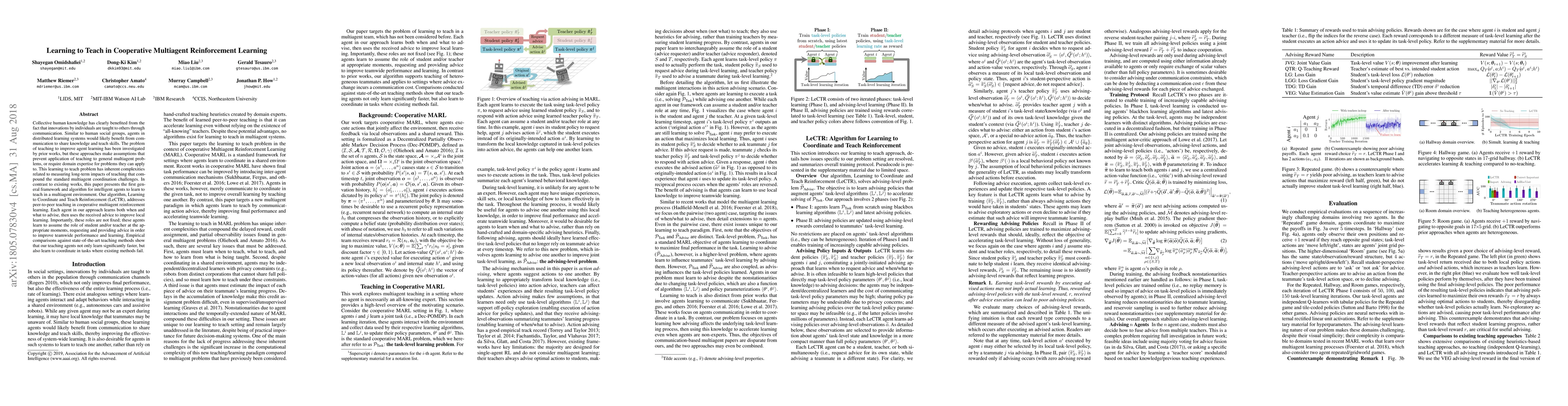 This paper introduces a novel framework, LeCTR, for cooperative multiagent reinforcement learning where agents learn to teach each other dynamically. Unlike prior methods, LeCTR enables agents to flexibly switch between student and teacher roles, improving both individual and teamwide learning efficiency.