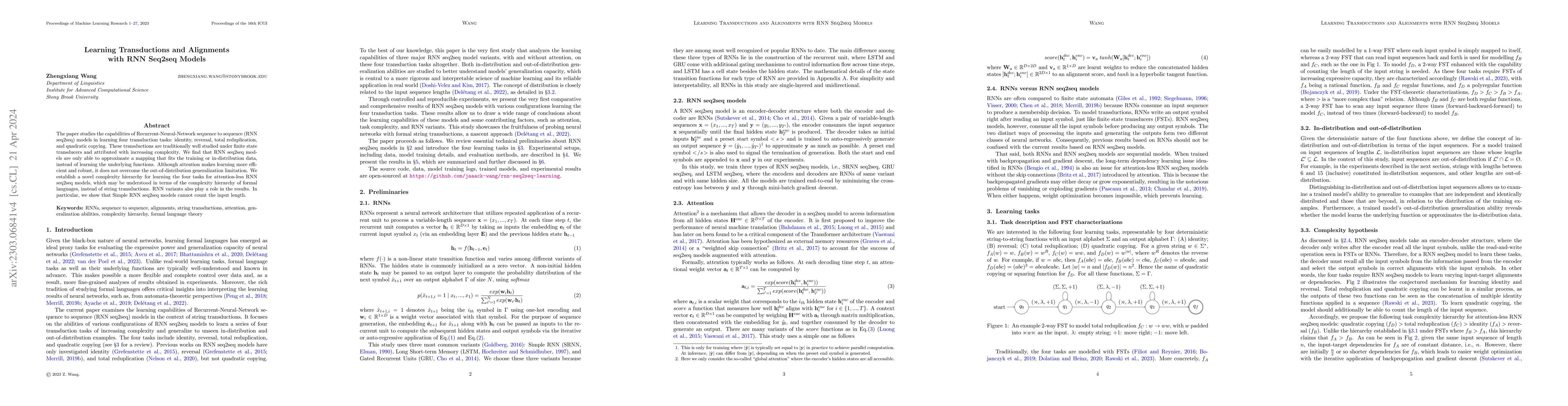 The paper investigates the performance of RNN seq2seq models on four transduction tasks, revealing they approximate training data rather than learning underlying functions. Attention improves efficiency but doesn't enhance out-of-distribution generalization; a complexity hierarchy is established for attention-less models.