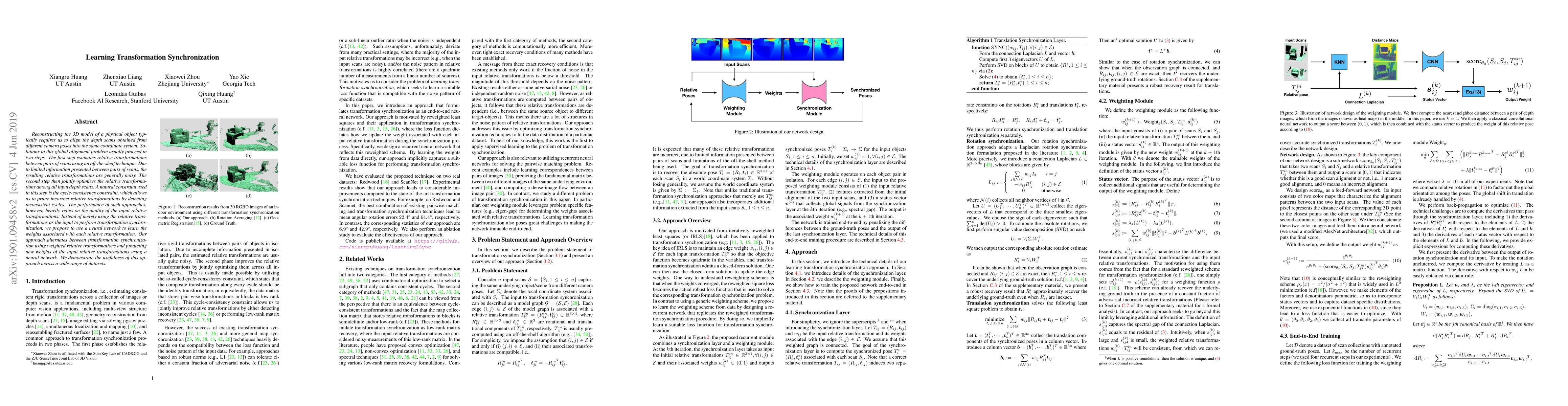 Reconstructing the 3D model of a physical object typically requires us to align the depth scans obtained from different camera poses into the same coordinate system. Solutions to this global alignment problem usually proceed in two steps. The first step estimates relative transformations between pairs of scans using an off-the-shelf technique. Due to limited information presented between pairs of scans, the resulting relative transformations are generally noisy. The second step then jointly optimizes the relative transformations among all input depth scans. A natural constraint used in this step is the cycle-consistency constraint, which allows us to prune incorrect relative transformations by detecting inconsistent cycles. The performance of such approaches, however, heavily relies on the quality of the input relative transformations. Instead of merely using the relative transformations as the input to perform transformation synchronization, we propose to use a neural network to learn the weights associated with each relative transformation. Our approach alternates between transformation synchronization using weighted relative transformations and predicting new weights of the input relative transformations using a neural network. We demonstrate the usefulness of this approach across a wide range of datasets.