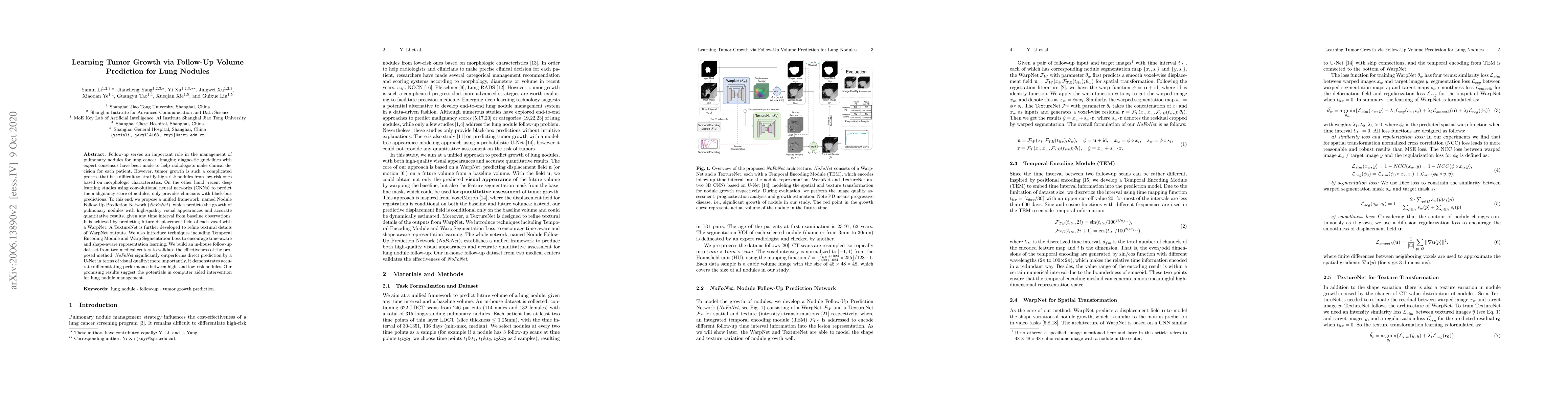 This paper proposes NoFoNet, a unified framework for predicting the growth of pulmonary nodules using deep learning techniques. The framework combines a WarpNet and TextureNet for high-quality visual and quantitative predictions, outperforming traditional U-Net methods, and shows potential for aiding in lung nodule management by differentiating high-risk from low-risk nodules.