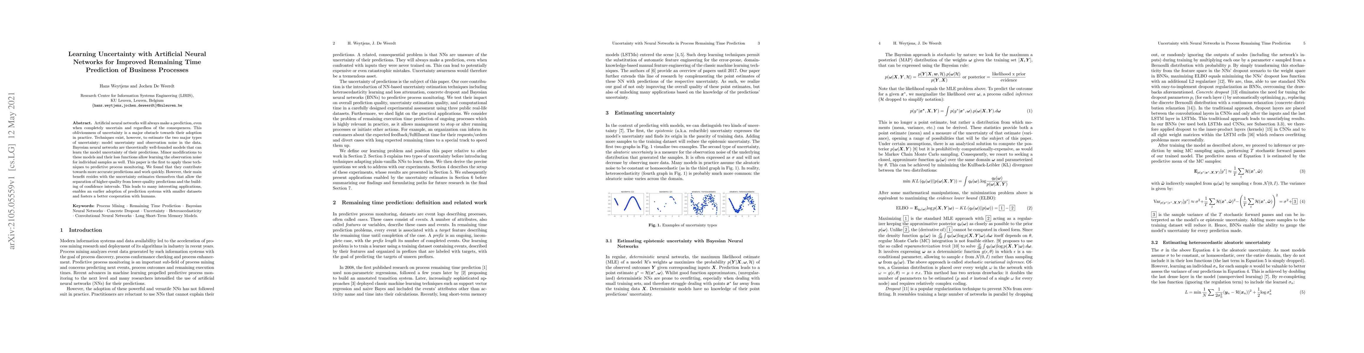 This paper explores the application of Bayesian neural networks to improve remaining time prediction in business processes by estimating both model uncertainty and observation noise. The techniques enhance prediction accuracy and enable the differentiation of prediction quality, facilitating better human-system collaboration and earlier adoption of predictive systems.
