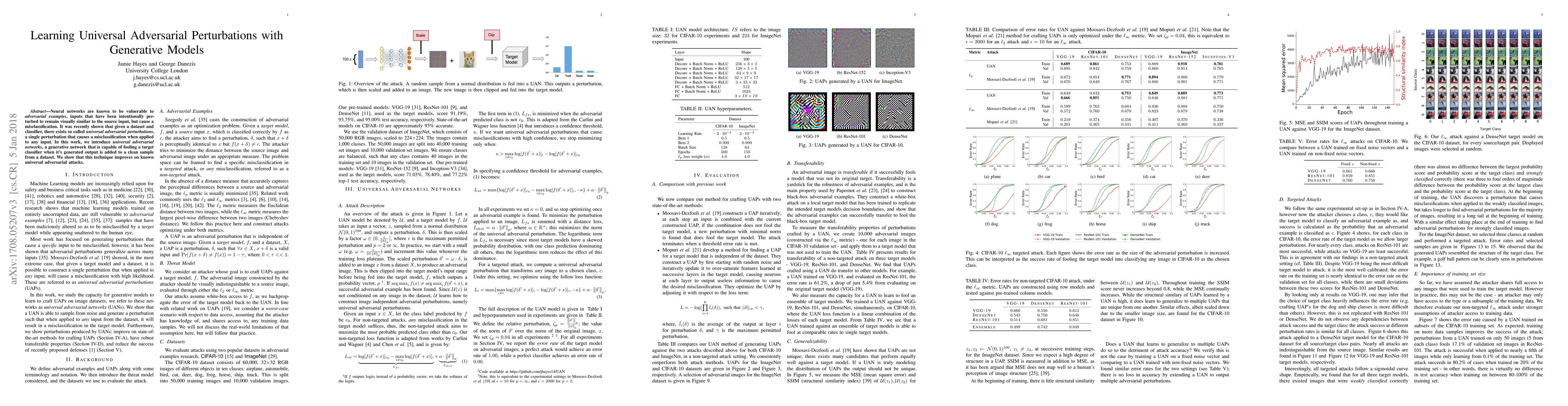 The paper proposes Universal Adversarial Networks (UANs), a generative model capable of producing universal adversarial perturbations (UAPs) that can misclassify any input from a dataset when added to clean samples.
