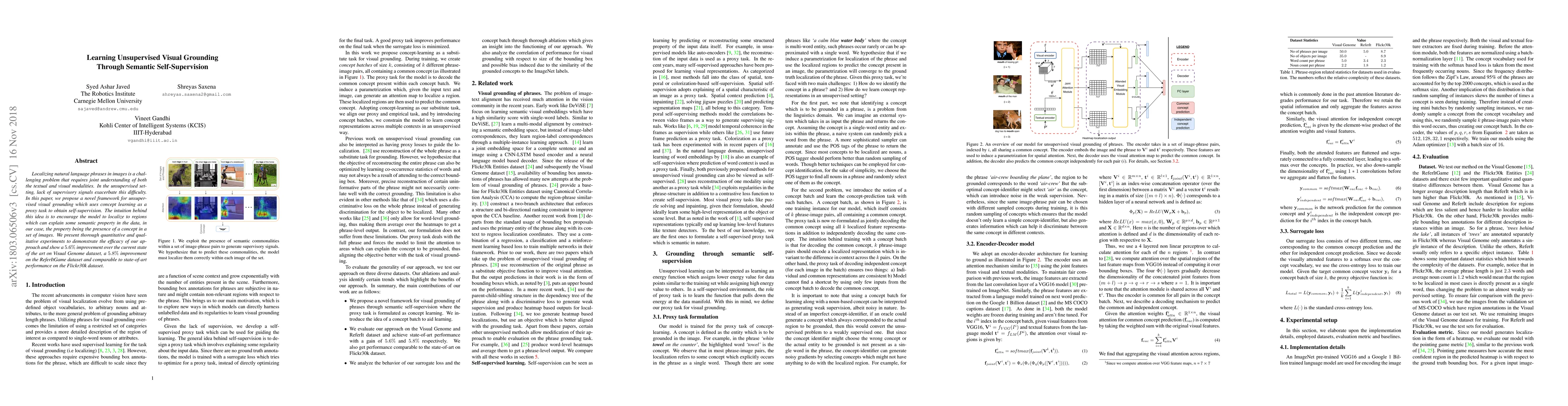 This paper introduces a framework for unsupervised visual grounding that leverages semantic self-supervision through concept learning. The approach localizes natural language phrases in images without labeled data, achieving notable improvements over current methods on multiple datasets.