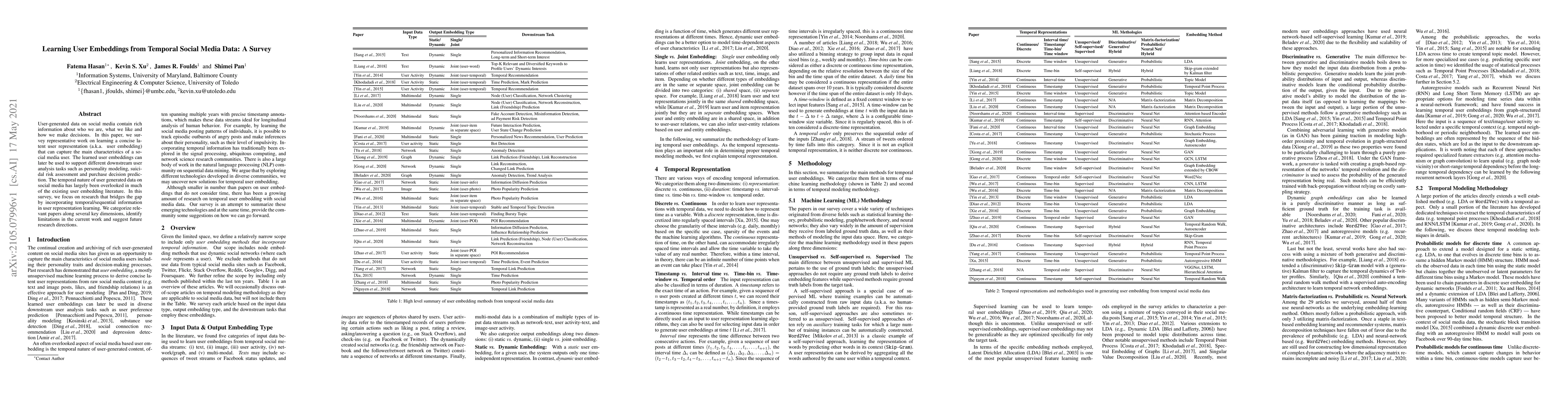 User-generated data on social media contain rich information about who we are, what we like and how we make decisions. In this paper, we survey representative work on learning a concise latent user representation (a.k.a. user embedding) that can capture the main characteristics of a social media user. The learned user embeddings can later be used to support different downstream user analysis tasks such as personality modeling, suicidal risk assessment and purchase decision prediction. The temporal nature of user-generated data on social media has largely been overlooked in much of the existing user embedding literature. In this survey, we focus on research that bridges the gap by incorporating temporal/sequential information in user representation learning. We categorize relevant papers along several key dimensions, identify limitations in the current work and suggest future research directions.