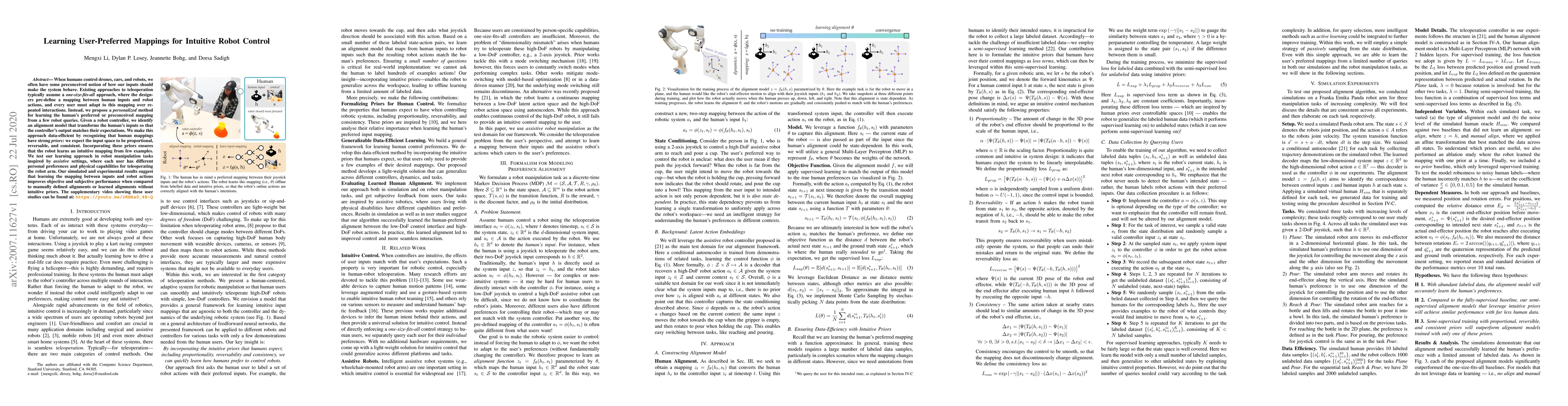 Researchers developed a personalized method for learning users' preferred mappings for robot control from few examples, improving objective and subjective performance in teleoperation tasks.