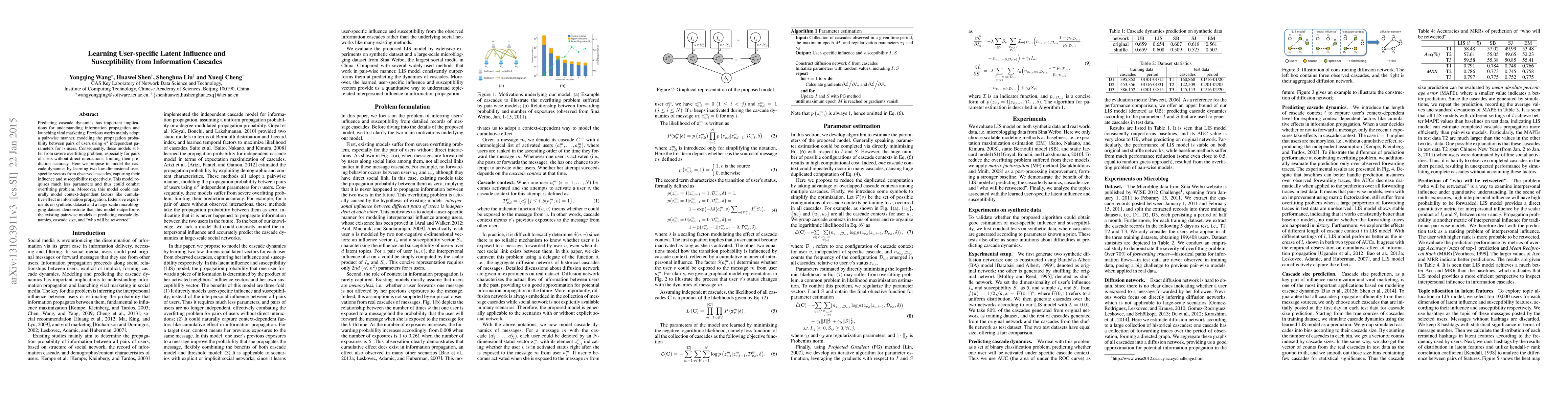 This paper proposes a novel method to predict information cascade dynamics by learning low-dimensional user-specific vectors for influence and susceptibility, significantly reducing model parameters and mitigating overfitting compared to pair-wise models. Experimental results show superior performance in predicting cascade dynamics and retweet likelihood on synthetic and real datasets.
