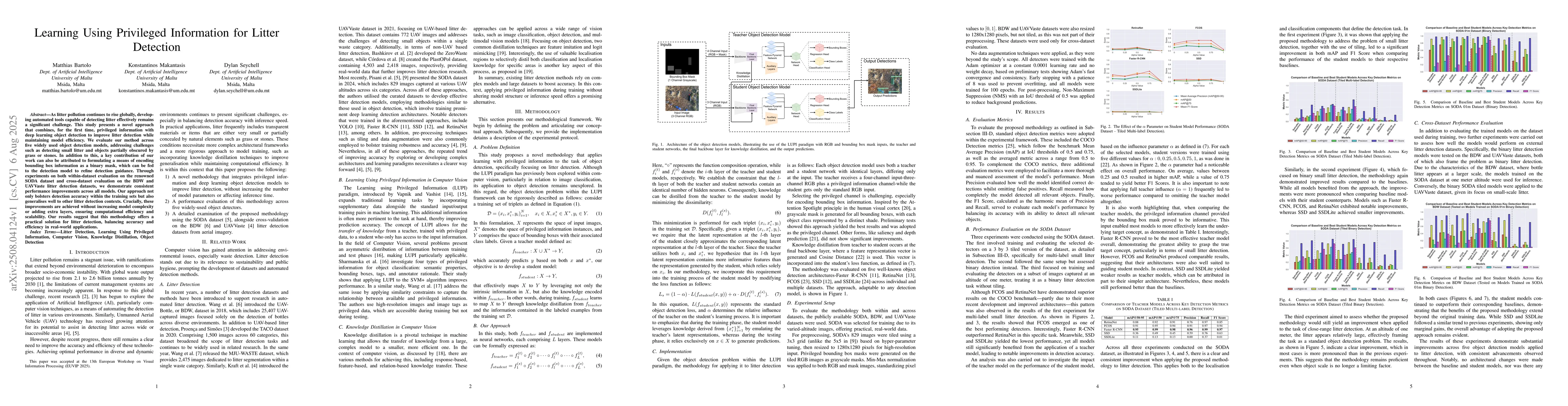 As litter pollution continues to rise globally, developing automated tools capable of detecting litter effectively remains a significant challenge. This study presents a novel approach that combines, for the first time, privileged information with deep learning object detection to improve litter detection while maintaining model efficiency. We evaluate our method across five widely used object detection models, addressing challenges such as detecting small litter and objects partially obscured by grass or stones. In addition to this, a key contribution of our work can also be attributed to formulating a means of encoding bounding box information as a binary mask, which can be fed to the detection model to refine detection guidance. Through experiments on both within-dataset evaluation on the renowned SODA dataset and cross-dataset evaluation on the BDW and UAVVaste litter detection datasets, we demonstrate consistent performance improvements across all models. Our approach not only bolsters detection accuracy within the training sets but also generalises well to other litter detection contexts. Crucially, these improvements are achieved without increasing model complexity or adding extra layers, ensuring computational efficiency and scalability. Our results suggest that this methodology offers a practical solution for litter detection, balancing accuracy and efficiency in real-world applications.