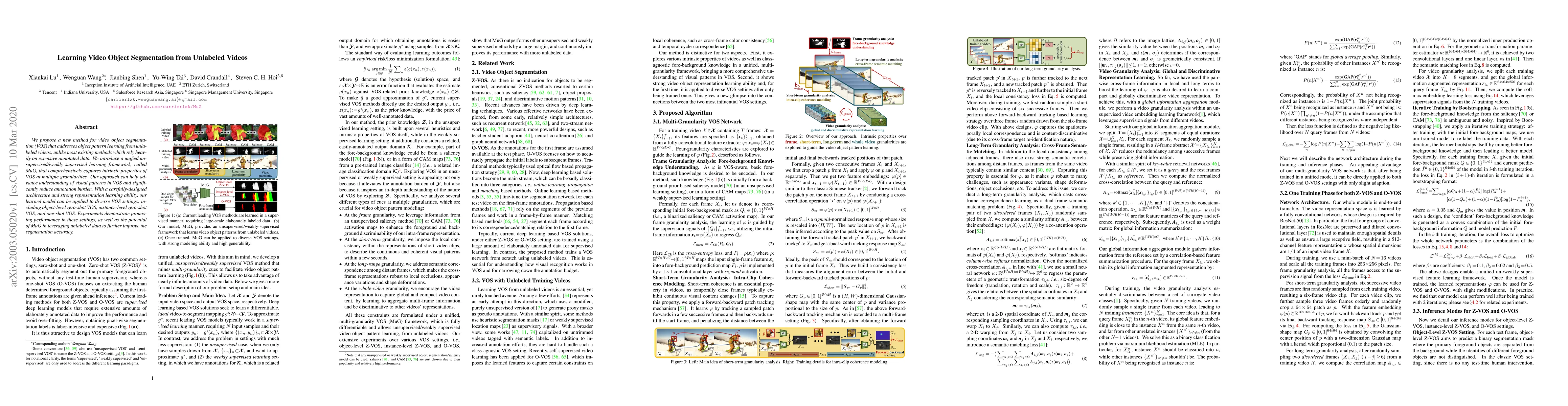 This paper introduces MuG, an unsupervised/weakly supervised learning framework for video object segmentation (VOS) that reduces reliance on annotated data. The proposed method effectively captures intrinsic properties of VOS at multiple levels and demonstrates promising performance in various VOS settings, showcasing the potential of leveraging unlabeled data for improved segmentation accuracy.