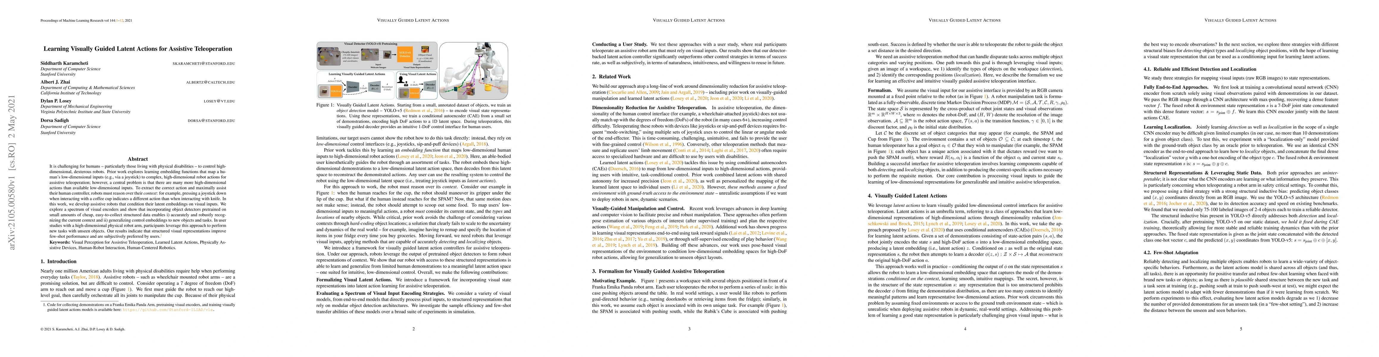 This paper develops assistive teleoperation robots that use visual inputs to learn latent actions, enabling them to accurately recognize context and generalize to new objects. Structured visual representations improve few-shot performance and are preferred by users in controlling high-dimensional robot arms.