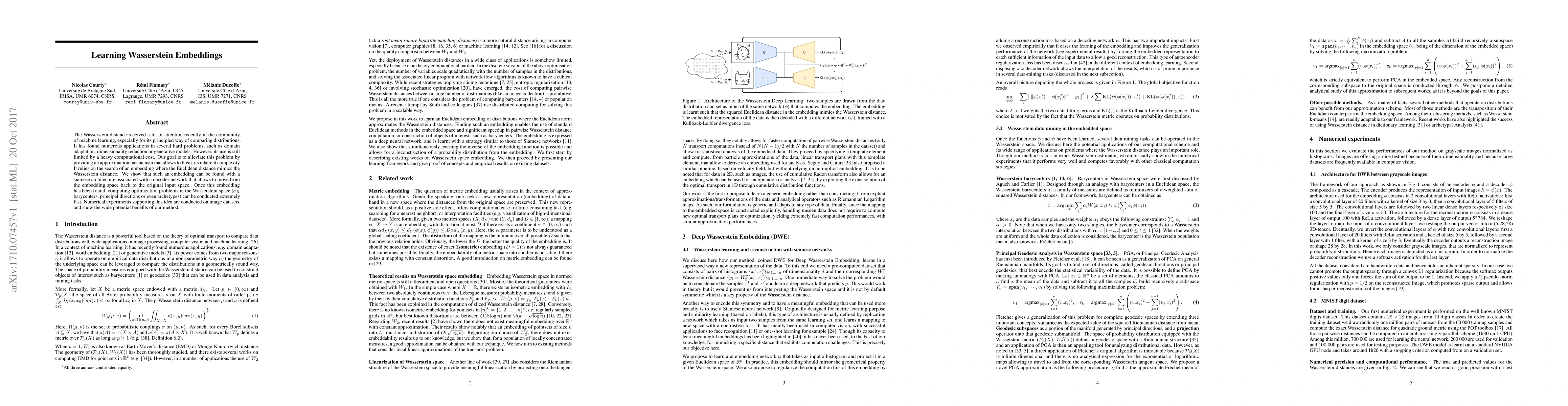 The paper presents a novel method for approximating Wasserstein distances through an embedding that emulates the Wasserstein metric using a siamese architecture and a decoder network, enabling efficient computation of various Wasserstein-based data mining tasks.