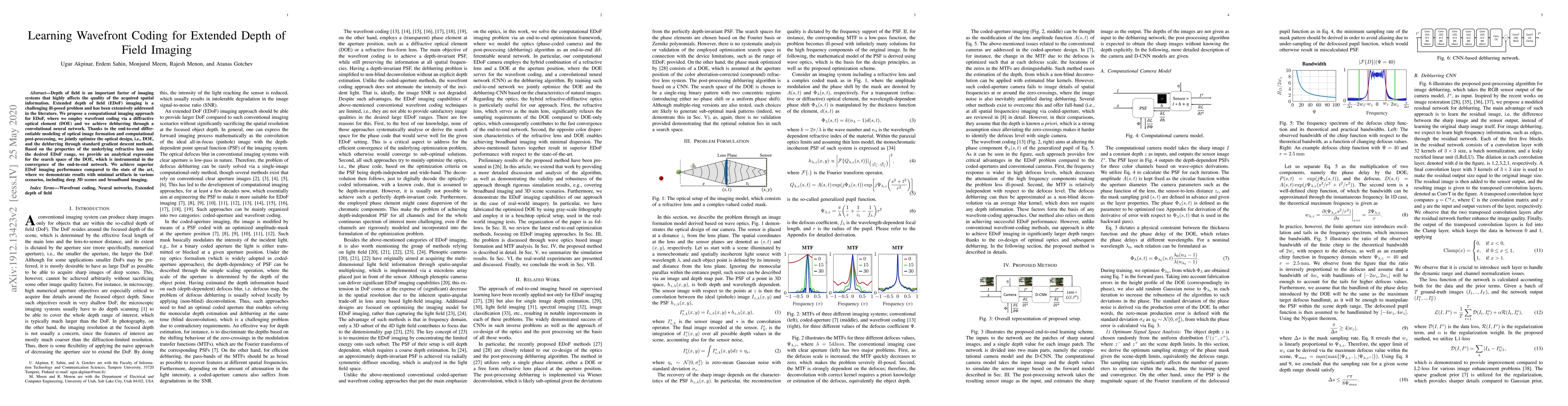 This paper proposes a computational imaging method for extended depth of field using wavefront coding and a diffractive optical element, optimized through a convolutional neural network and gradient descent. The approach achieves superior imaging performance with minimal artifacts, outperforming current state-of-the-art techniques.