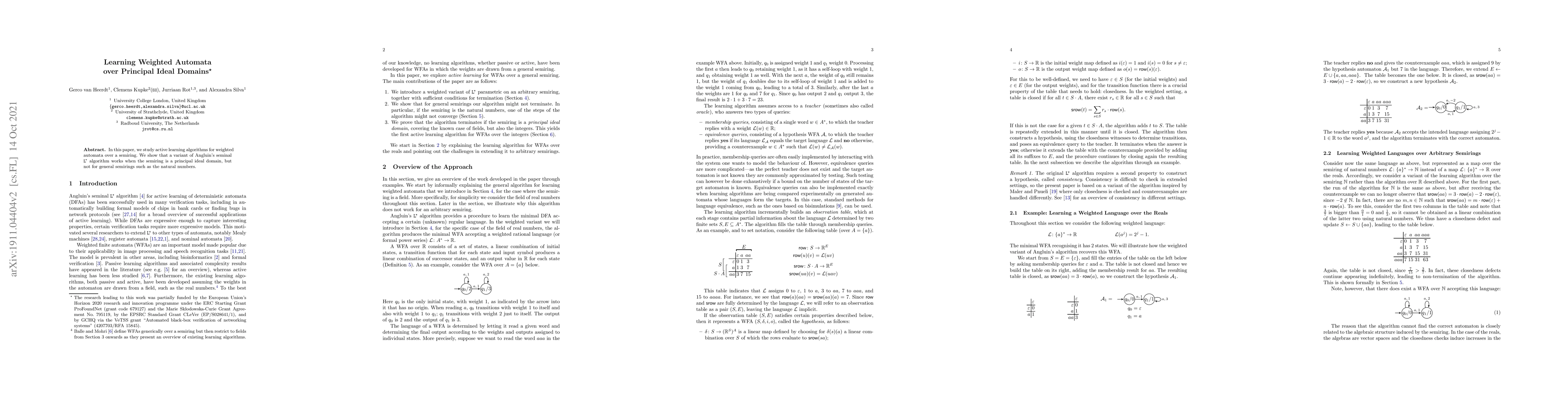 Researchers developed an active learning algorithm for weighted automata over principal ideal domains, which is a specific type of mathematical structure that allows for more efficient learning, but not for general semirings like natural numbers.