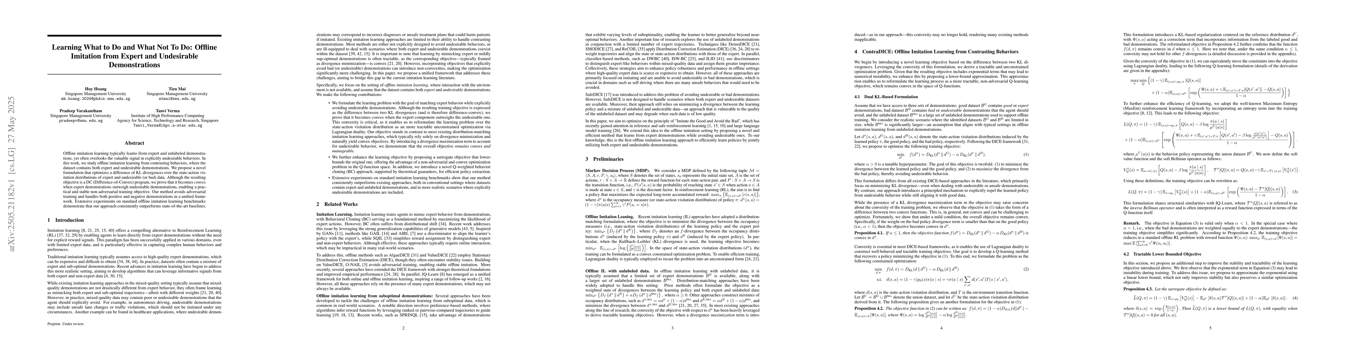 Researchers propose a new method for offline imitation learning that learns from both expert and undesirable demonstrations, outperforming state-of-the-art baselines in experiments.