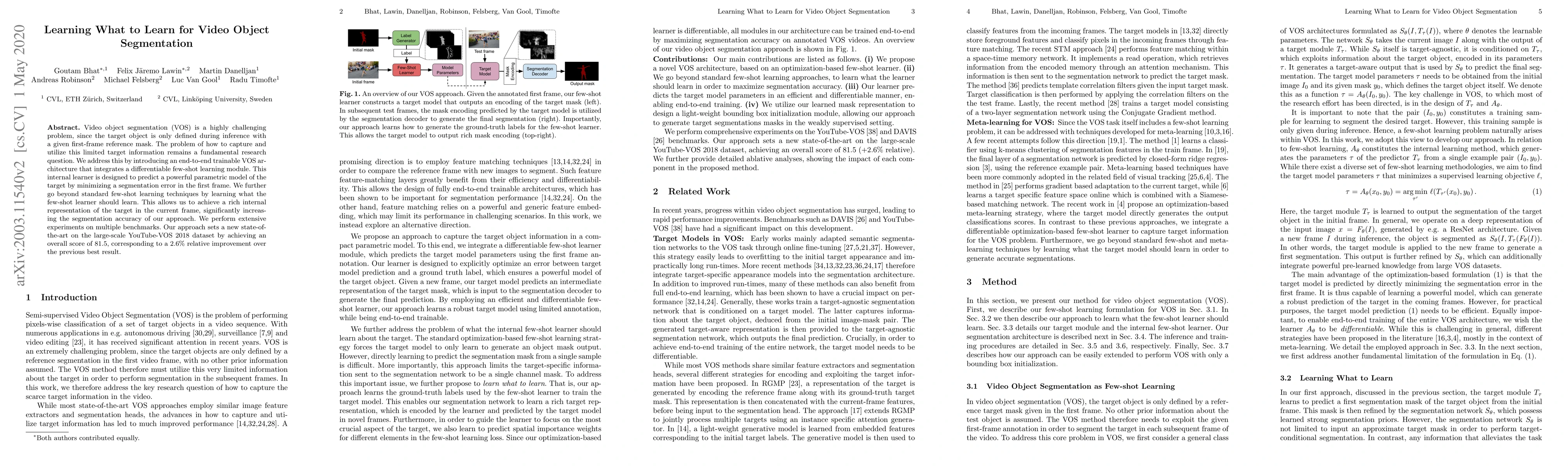 A new video object segmentation approach learns what to learn for optimal performance, achieving a state-of-the-art score of 81.5 on the YouTube-VOS 2018 dataset.