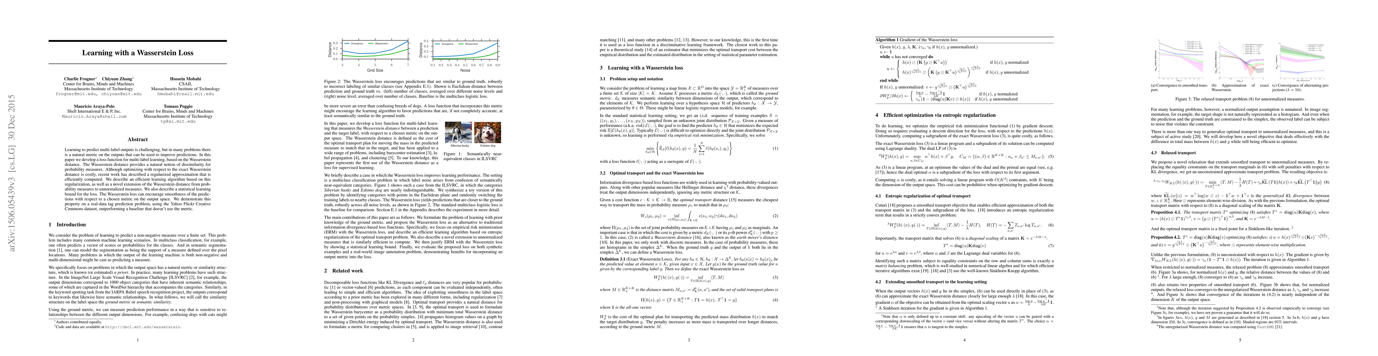 This paper proposes a novel loss function for multi-label learning based on the Wasserstein distance, which measures dissimilarity between probability distributions. The authors introduce an efficient learning algorithm using a regularized approximation of the Wasserstein loss and demonstrate its effectiveness on a tag prediction task, outperforming baseline methods.