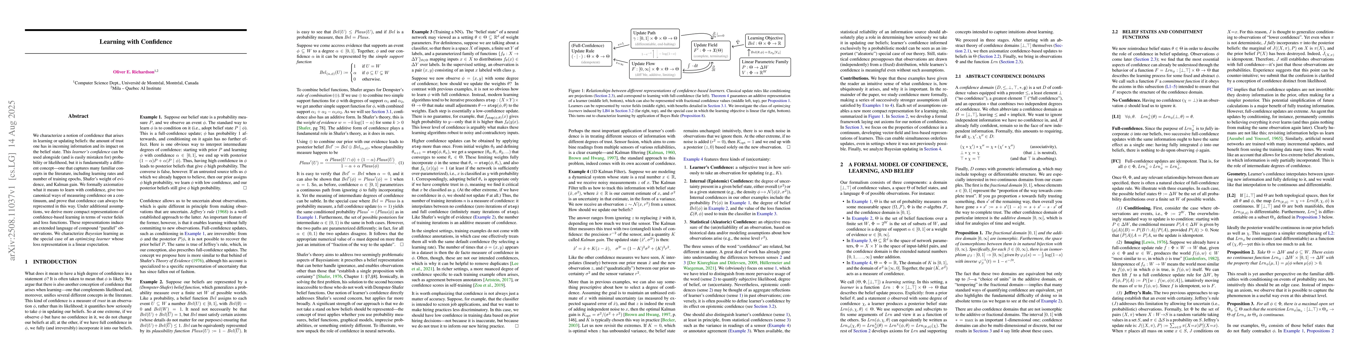 We characterize a notion of confidence that arises in learning or updating beliefs: the amount of trust one has in incoming information and its impact on the belief state. This learner's confidence can be used alongside (and is easily mistaken for) probability or likelihood, but it is fundamentally a different concept -- one that captures many familiar concepts in the literature, including learning rates and number of training epochs, Shafer's weight of evidence, and Kalman gain. We formally axiomatize what it means to learn with confidence, give two canonical ways of measuring confidence on a continuum, and prove that confidence can always be represented in this way. Under additional assumptions, we derive more compact representations of confidence-based learning in terms of vector fields and loss functions. These representations induce an extended language of compound "parallel" observations. We characterize Bayes Rule as the special case of an optimizing learner whose loss representation is a linear expectation.