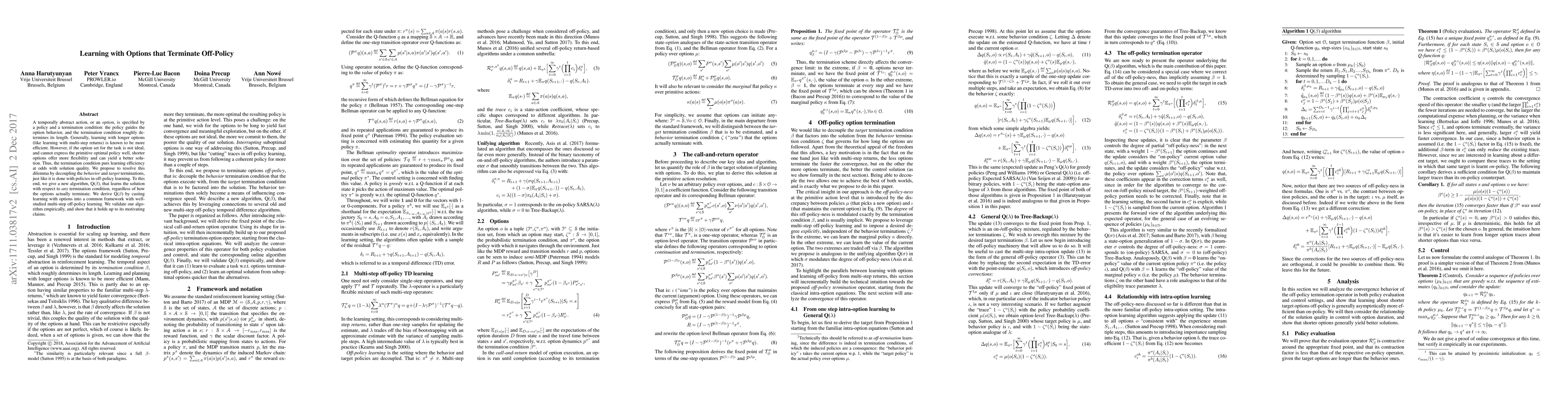 The paper proposes a new algorithm, Q(\beta), to learn with temporally abstract options that can terminate off-policy, resolving the trade-off between learning efficiency and solution quality by decoupling behavior and target terminations. Empirical validation shows the algorithm's effectiveness.