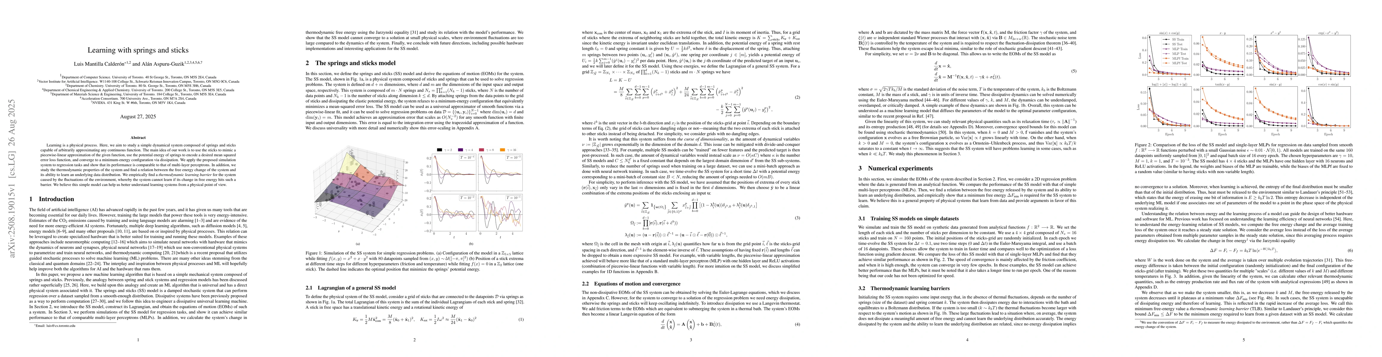 Learning is a physical process. Here, we aim to study a simple dynamical system composed of springs and sticks capable of arbitrarily approximating any continuous function. The main idea of our work is to use the sticks to mimic a piecewise-linear approximation of the given function, use the potential energy of springs to encode a desired mean squared error loss function, and converge to a minimum-energy configuration via dissipation. We apply the proposed simulation system to regression tasks and show that its performance is comparable to that of multi-layer perceptrons. In addition, we study the thermodynamic properties of the system and find a relation between the free energy change of the system and its ability to learn an underlying data distribution. We empirically find a \emph{thermodynamic learning barrier} for the system caused by the fluctuations of the environment, whereby the system cannot learn if its change in free energy hits such a barrier. We believe this simple model can help us better understand learning systems from a physical point of view.