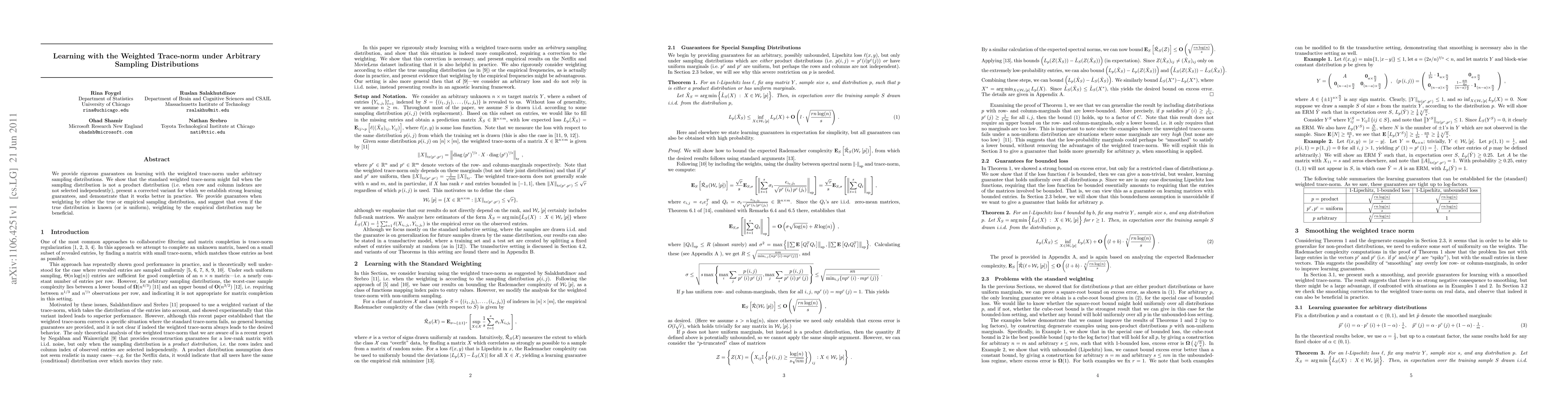 This paper presents rigorous learning guarantees for the weighted trace-norm under arbitrary sampling distributions, correcting the standard approach when sampling is not independent. It demonstrates improved performance of the corrected variant in practice and suggests empirical weighting can be beneficial even when the true distribution is known.